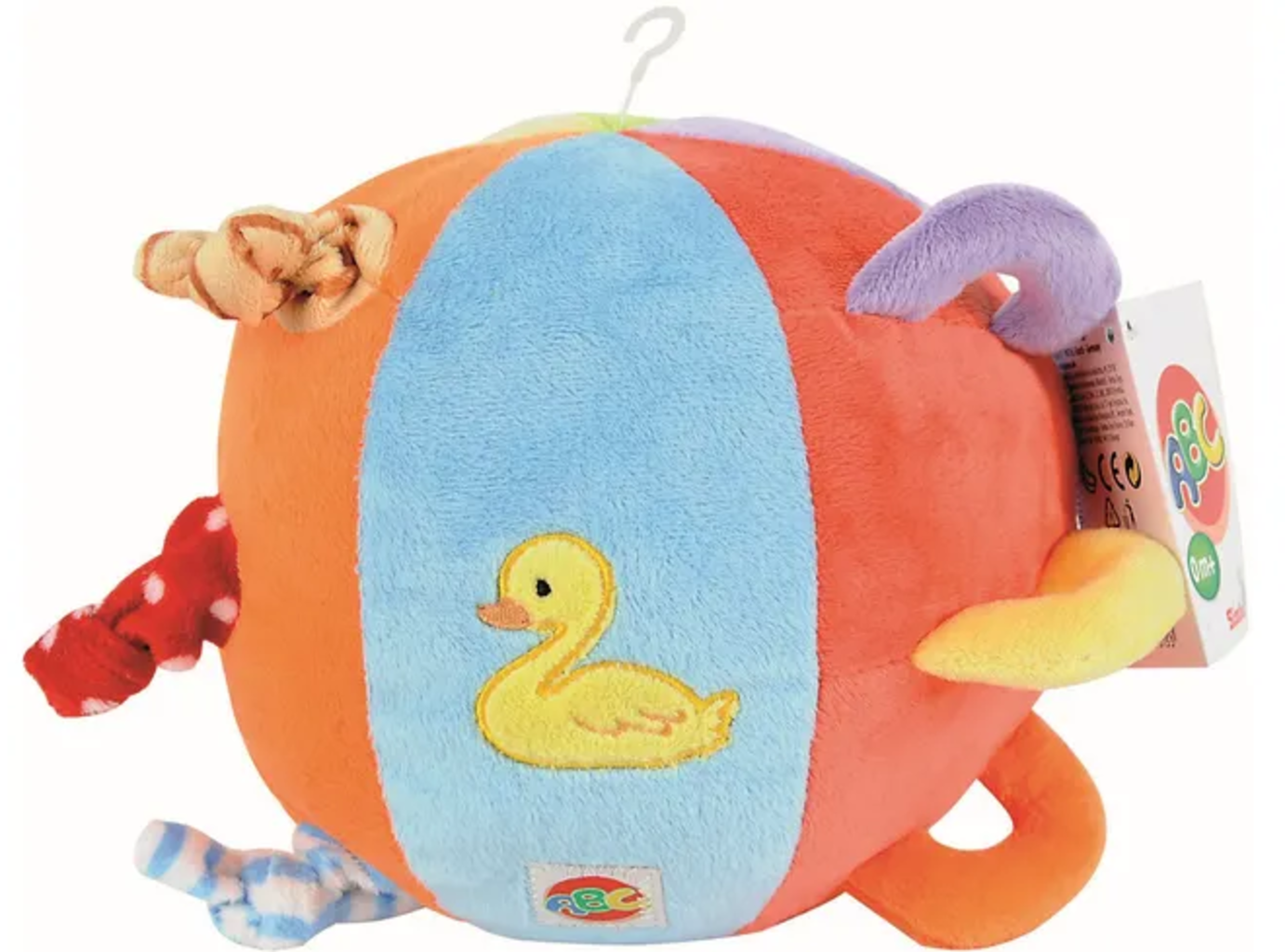 Esta pelota blanda tiene diferentes superficies, pinchos, anillos de agarre y bordados. En su interior se esconde un cascabel que suena cuando la pelota se mueve. De este modo, se estimulan todos los sentidos mientras se juega.
