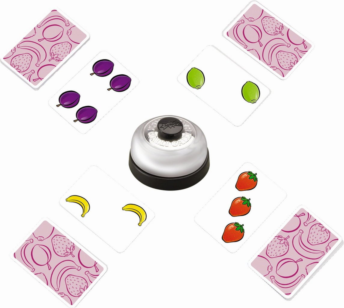 Esta macedonia requiere que todos reaccionen con rapidez y tengan buen ojo. Poco a poco, los jugadores revelan sus cartas mostrando fresas, plátanos, ciruelas o limas. En cuanto aparecen cinco frutas del mismo tipo, todos intentan tocar la campana situada en el centro de la mesa lo más rápido posible para hacerse con las codiciadas cartas.