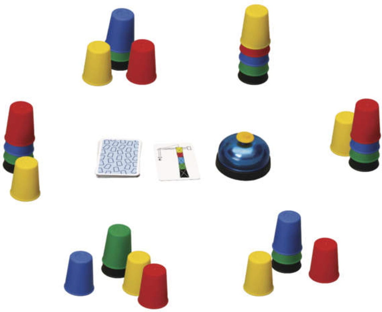 Lo que parece sencillo al principio puede resultar mucho más complicado de lo esperado. Cada jugador recibe 5 copas de colores, que debe colocar en el centro de la mesa lo más rápidamente posible según la carta descubierta. Como todo el mundo apila y empuja tantas como puede al mismo tiempo, ¡la acción frenética es inevitable!