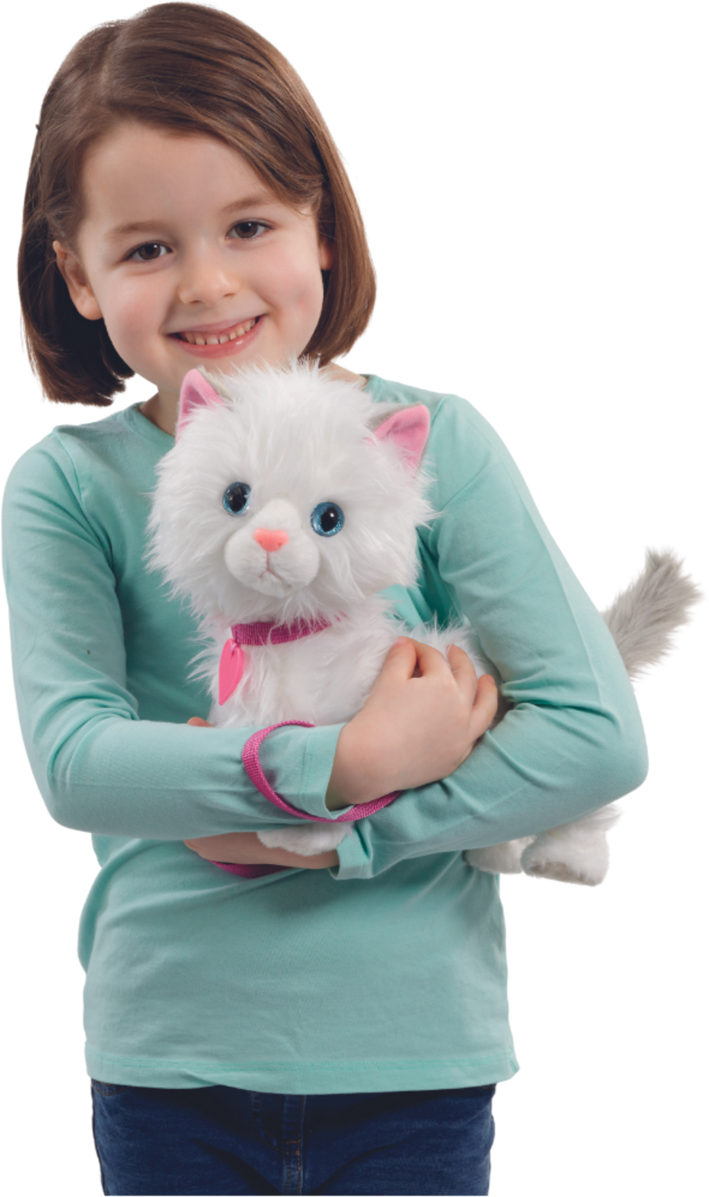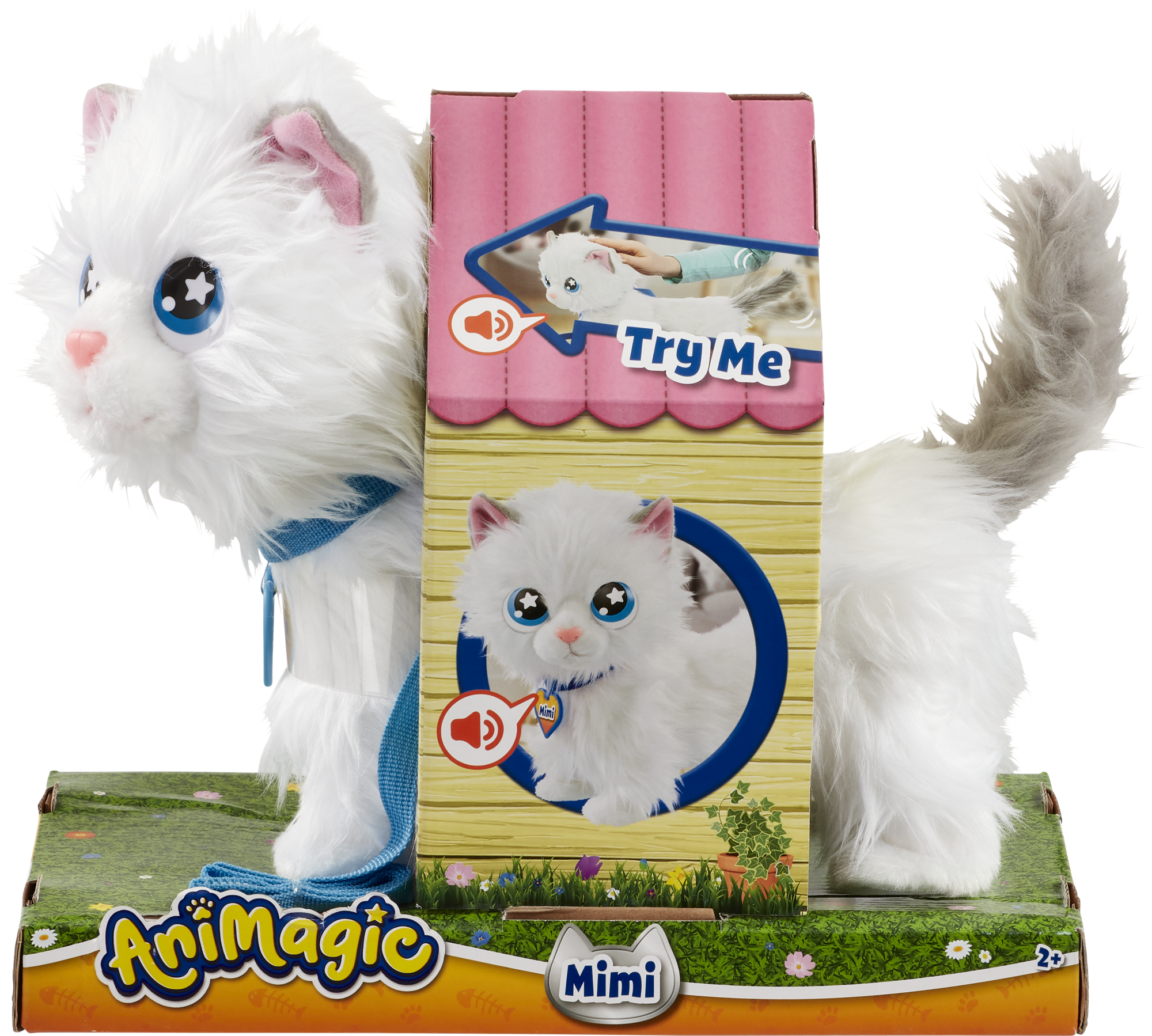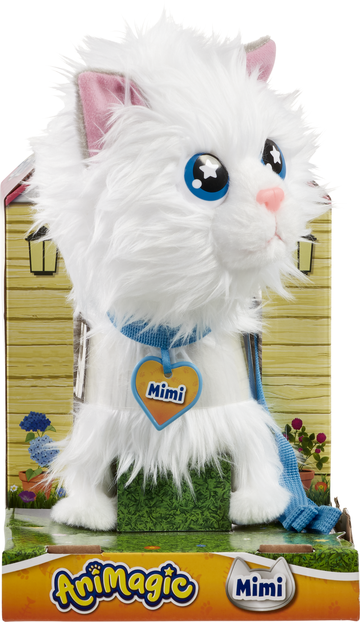 ¿Quién maúlla? Es la gata Mimi, que está deseando abrazarte y corre hacia ti como una verdadera mascota. Cuando la acaricias, mueve la cola de un lado a otro de forma divertida.