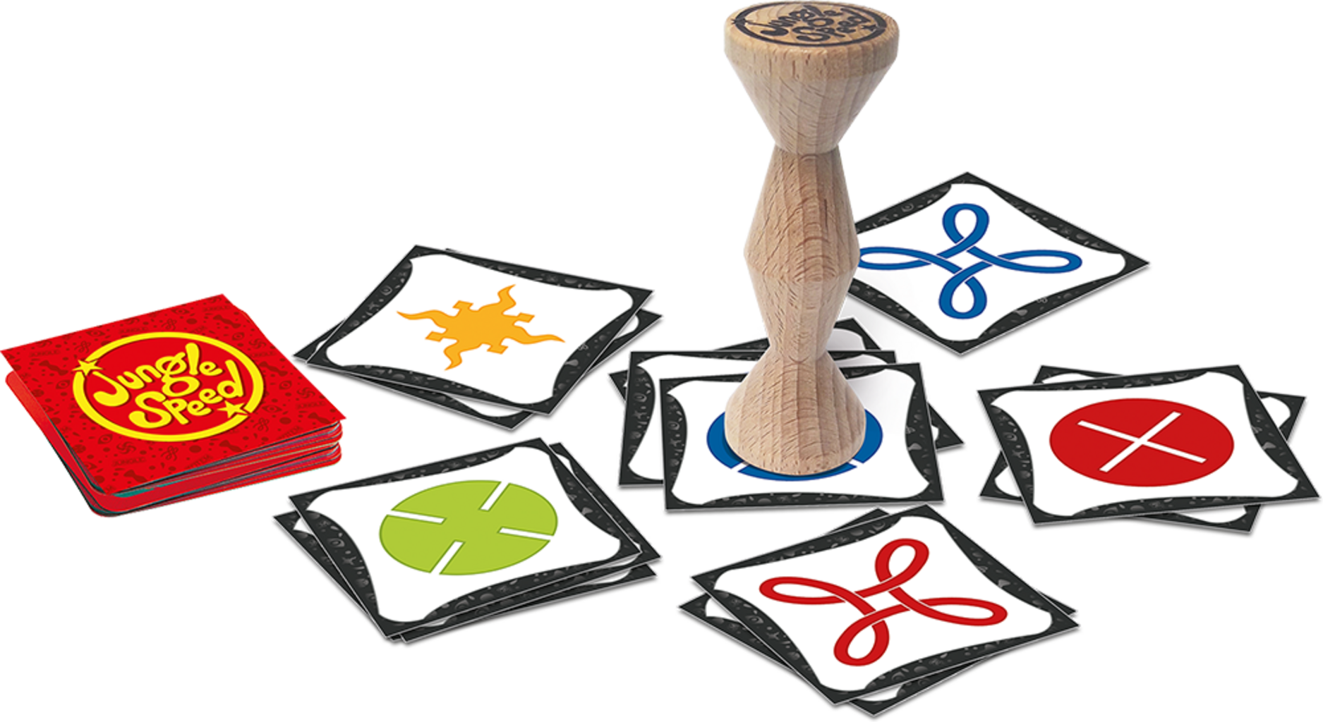 Una aventura en la jungla llena de acción para toda la familia. Todos los jugadores dan la vuelta a una carta tras otra de su mazo. Si como resultado ven los mismos símbolos, lo primero que tienen que hacer es alcanzar el tótem. Pero ten cuidado: los símbolos de las cartas son muy parecidos y quien los coja en el momento equivocado será penalizado.