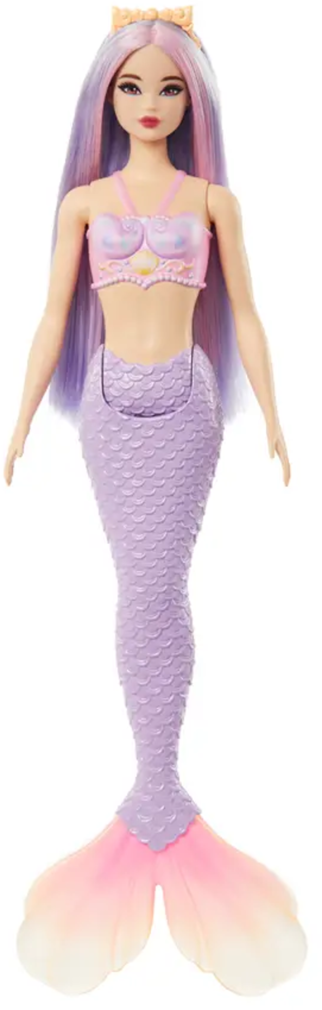 Sumérgete en el mágico mundo submarino con esta muñeca sirena Barbie Con el pelo de color lila, la aleta caudal morada y la cinta para el pelo a juego, da vida a todas las aventuras submarinas.