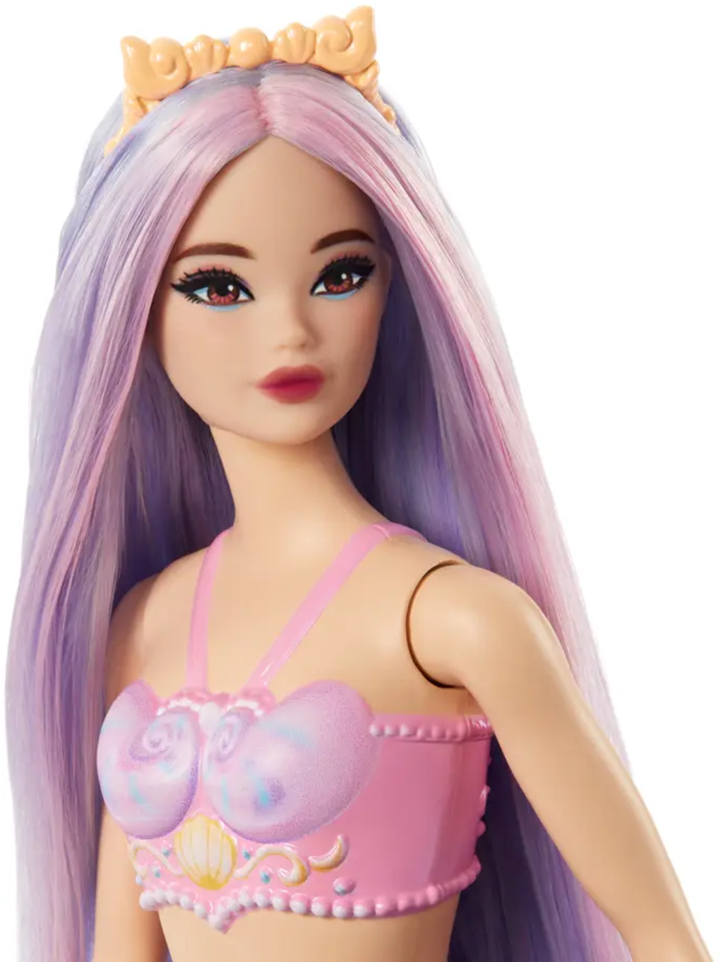 Barbie Muñeca sirena con pelo lila, aleta púrpura y cinta para el pelo