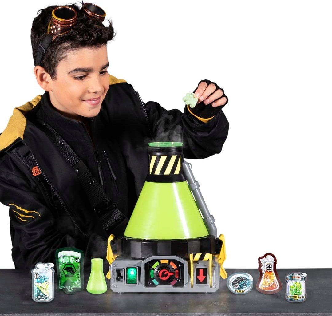 Contenido del juego: 1 personaje de tiburón aleatorio (figura de acción electrónica), 1 playset (contenedor de laboratorio), 5 ingredientes para experimentos, 8 ciclos de pulverización, 1 mini vaso de precipitados, 1 arma.