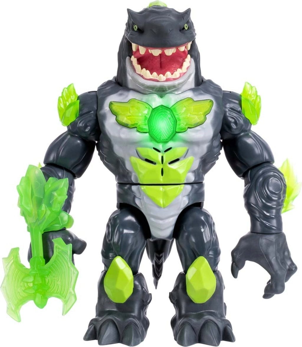 - Figura de acción con mandíbula móvil, sonidos, luces, arma y ataque cuerpo a cuerpo