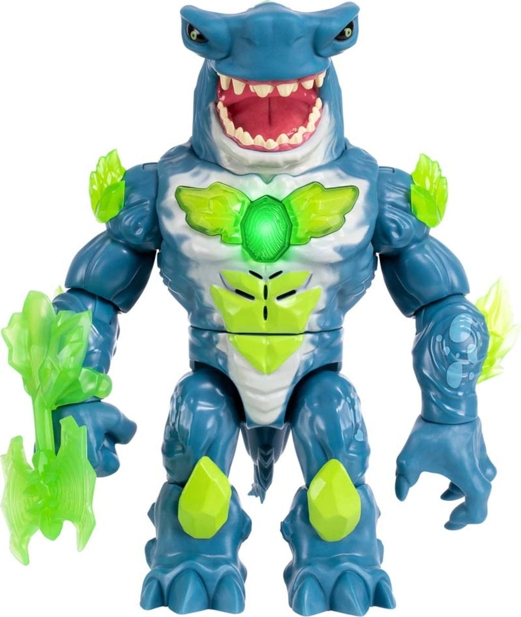 El mundo está en peligro y sólo tú tienes la oportunidad de salvarlo. Ve al laboratorio secreto, enciende el reactor, añade los ingredientes ultra raros y crea el poderoso monstruo tiburón. La fascinante figura de acción se lanza a la batalla contra todos los supervillanos con efectos de luz y sonido y fantásticas funciones de ataque.
