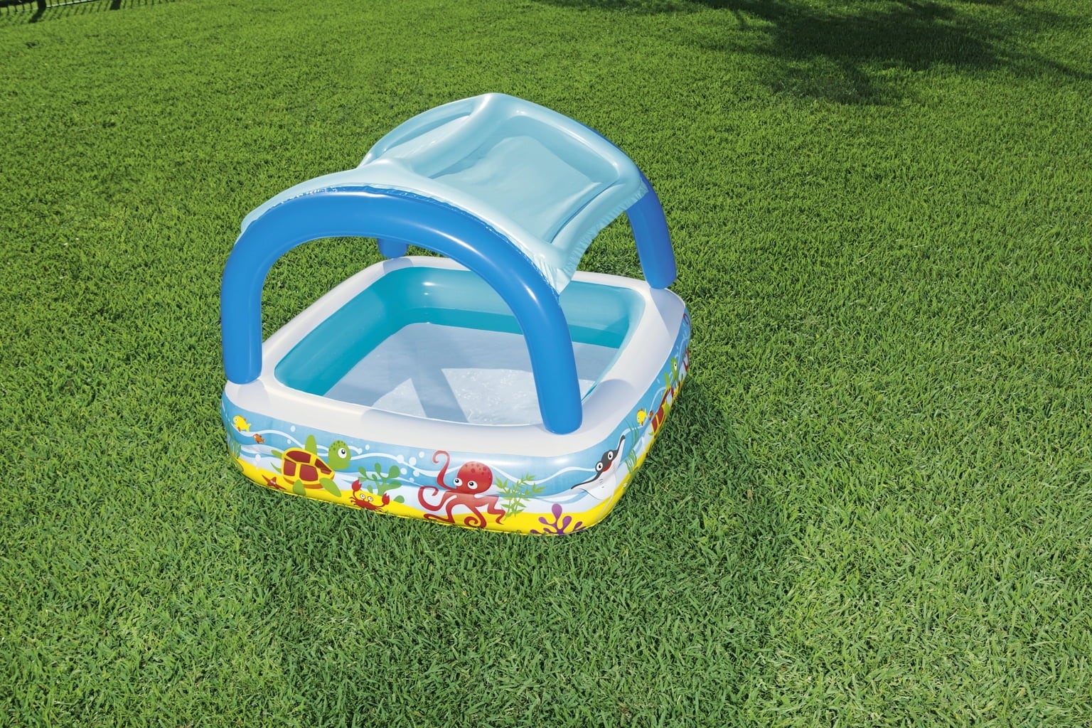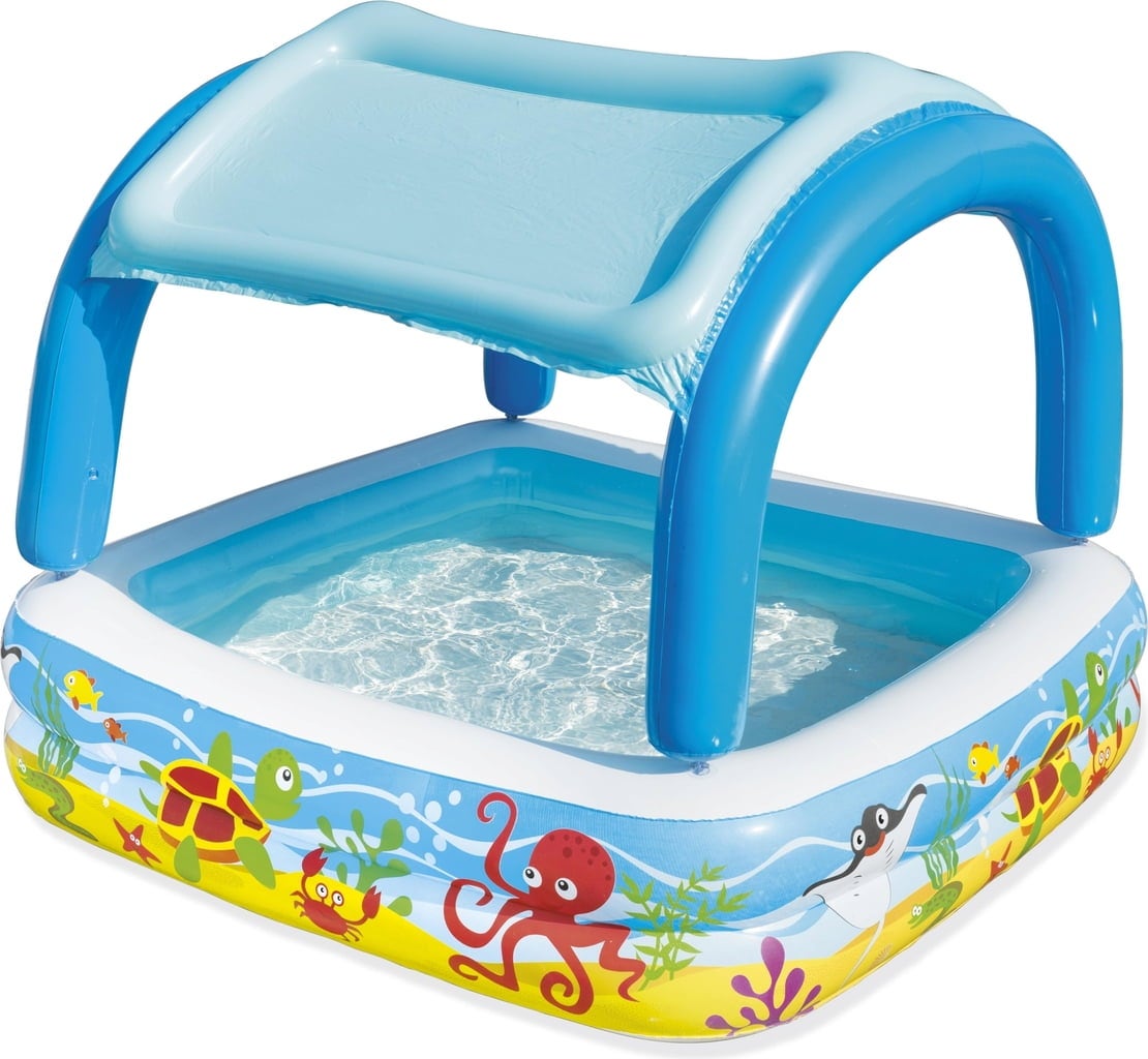 Con la piscina infantil Beach Buddy™ con techo solar, puedes crear el pequeño mundo acuático perfecto en tu propio jardín. Esta piscina infantil es perfecta para pequeños exploradores a partir de dos años, ya que ofrece espacio suficiente para desahogarse y refrescarse. El alegre motivo marino estimula la imaginación y convierte la hora del baño en una auténtica aventura.