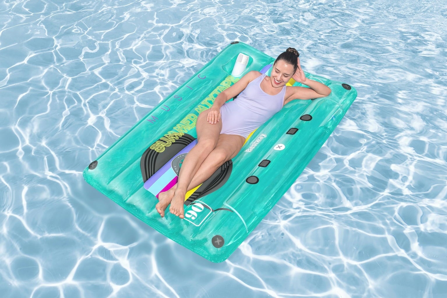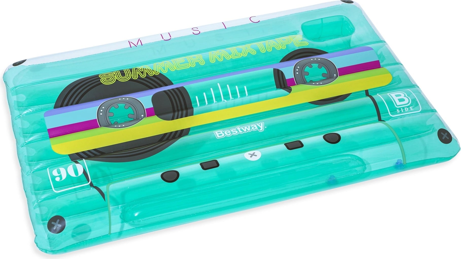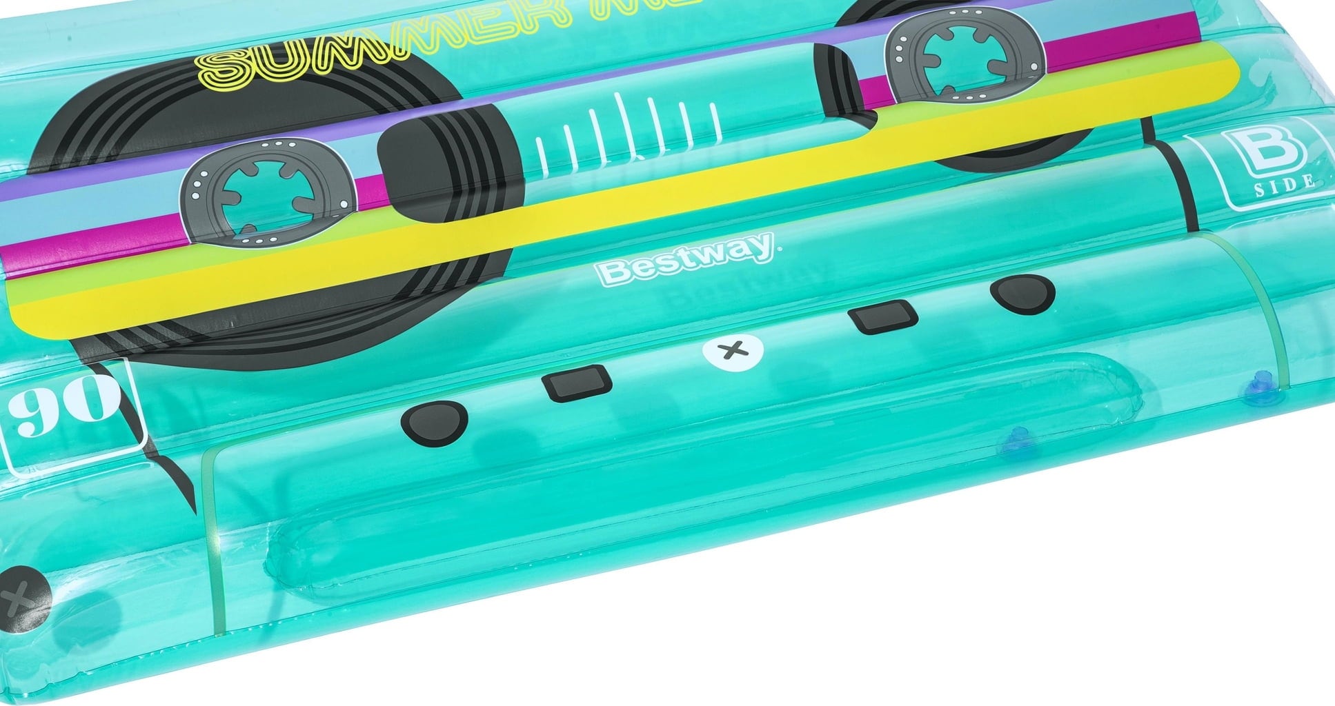¿Recuerdas aquellas viejas y queridas cintas de casete? Con la colchoneta hinchable Bestway Cassette Retro podrás experimentar esa sensación directamente en la piscina Esta colorida colchoneta con forma de casete no sólo es bonita a la vista, sino que también tiene un compartimento de almacenamiento integrado: perfecto para tu altavoz Bluetooth, protector solar u otros artículos esenciales para la piscina.