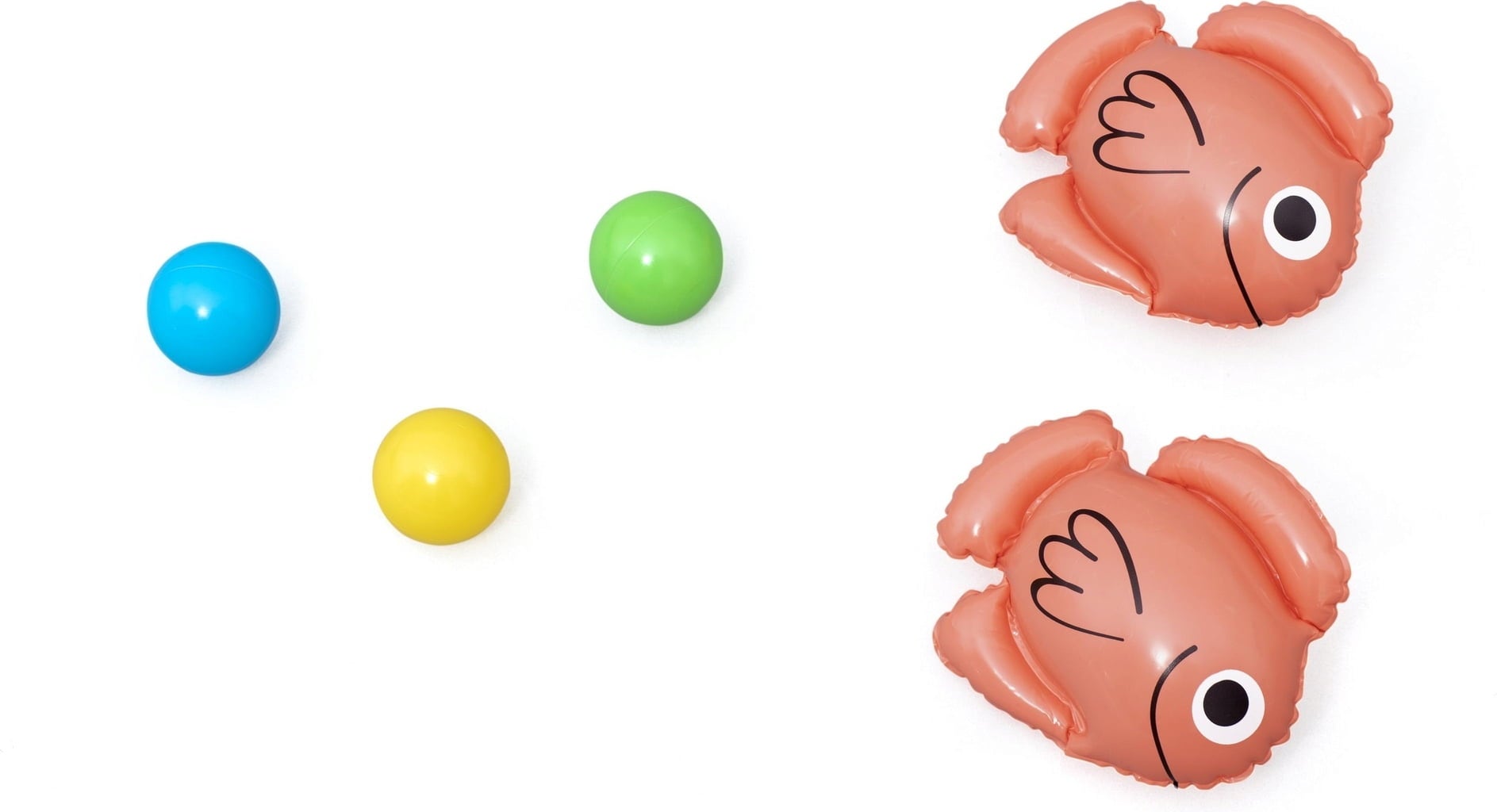 El tobogán con cojín de aterrizaje blando garantiza aterrizajes suaves y mucha diversión en el tobogán. Un juego de lanzamiento con forma de cocodrilo pone a prueba la destreza, mientras que la red extraíble se puede utilizar para atrapar los peces de juguete PuffyPal™ incluidos y las pelotas de juego.