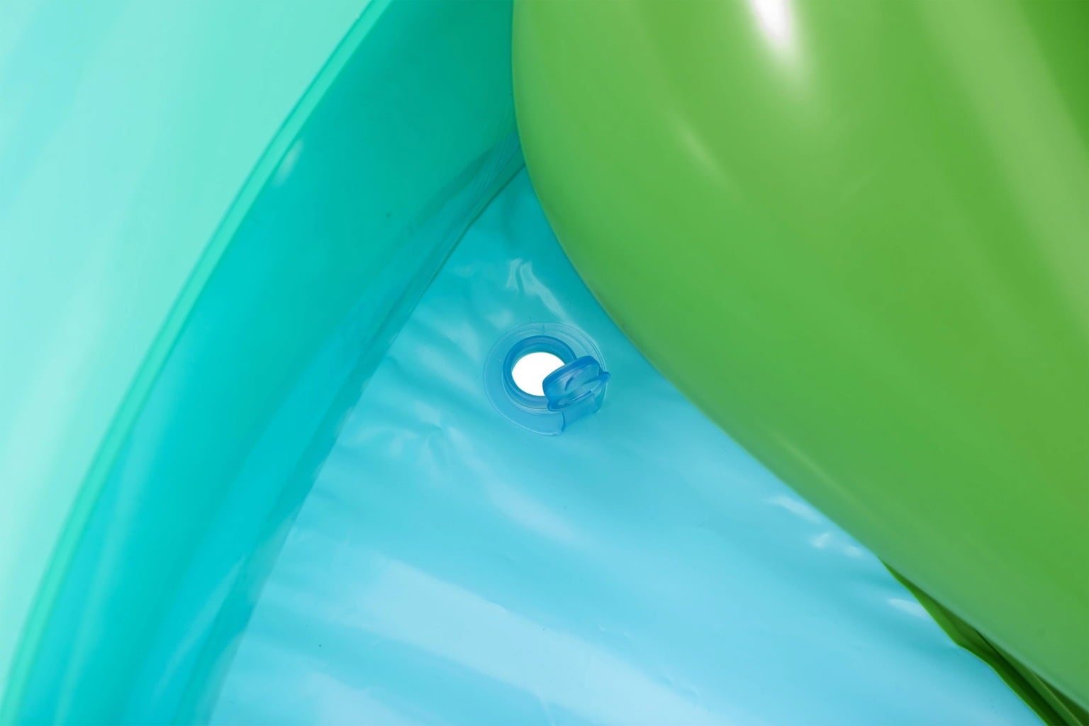 Con el centro de juegos Crocodile Cove de Bestway podrás llevar la jungla directamente a tu casa. Fabricado en robusto PVC, resiste hasta la más salvaje cacería de cocodrilos. Con una capacidad de 210 litros, los más pequeños podrán chapotear y divertirse a sus anchas. El diseño es realmente llamativo: un cocodrilo gigante supervisa el juego e invita al juego creativo. Un árbol hinchable hace las veces de aspersor y refresca en los días calurosos.