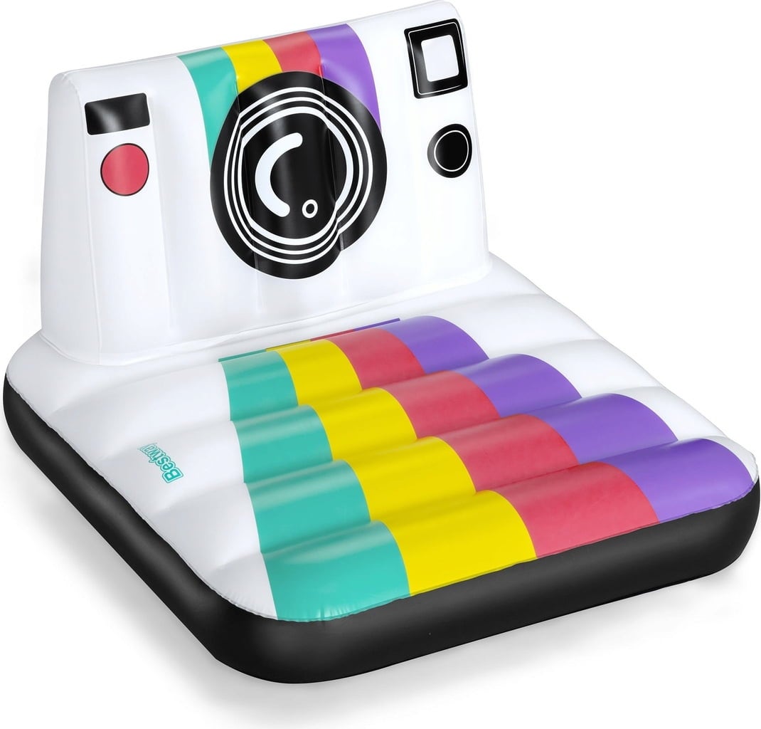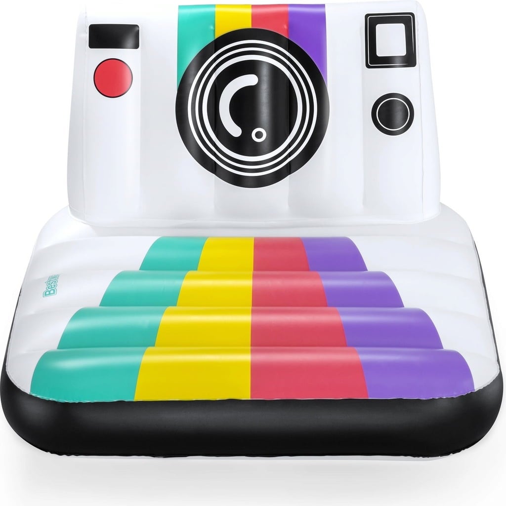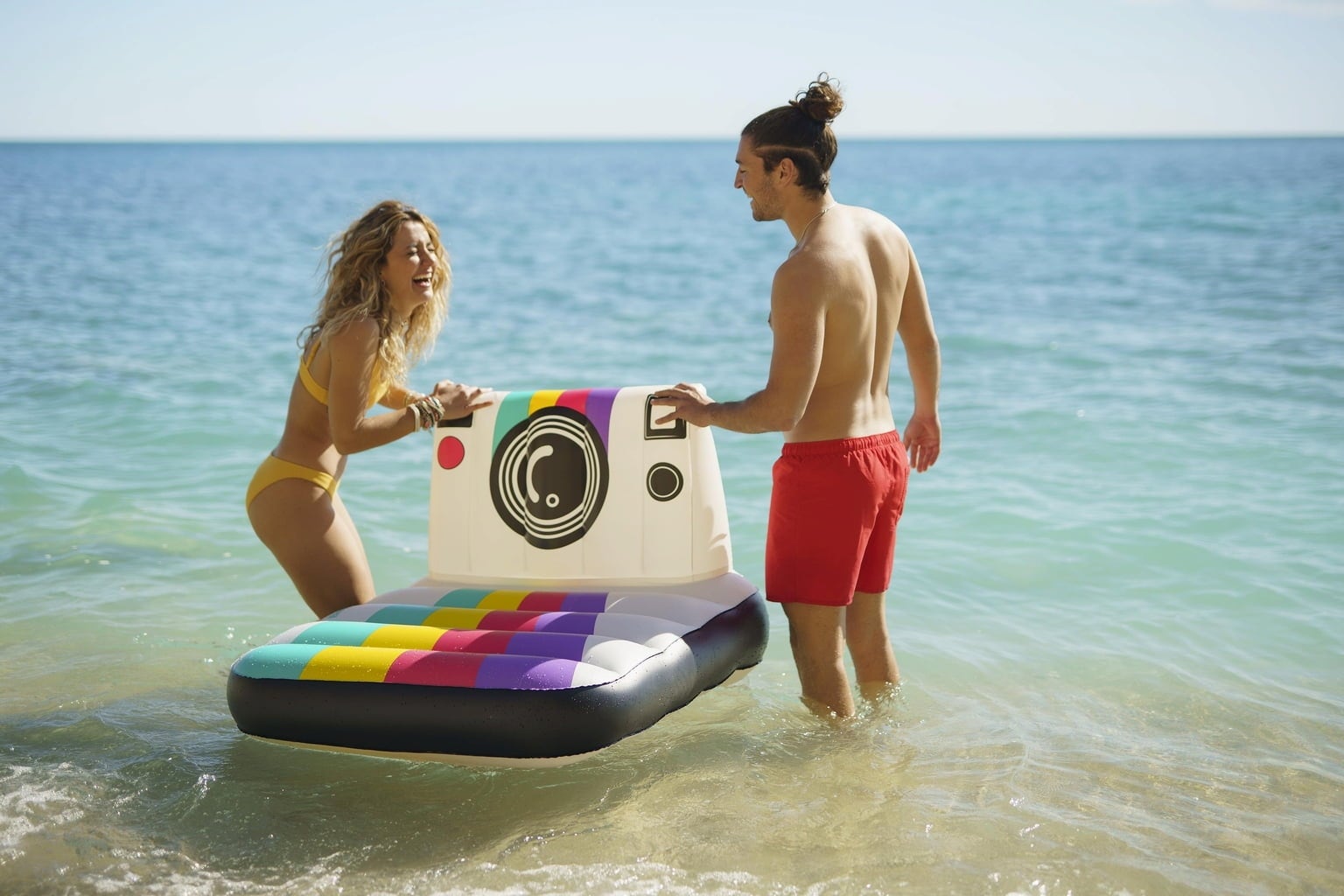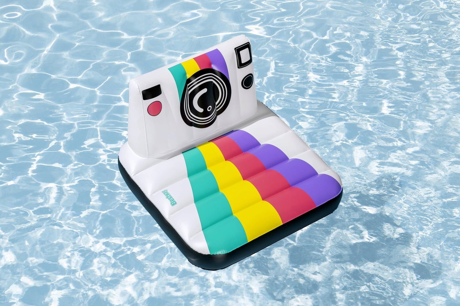 Con la colchoneta hinchable Pose 'n Float, tu piscina se convertirá en el escenario de momentos inolvidables. Este accesorio de vivos colores con diseño de cámara no sólo es un verdadero punto de atracción, sino también el lugar perfecto para tomarse bonitos selfies.