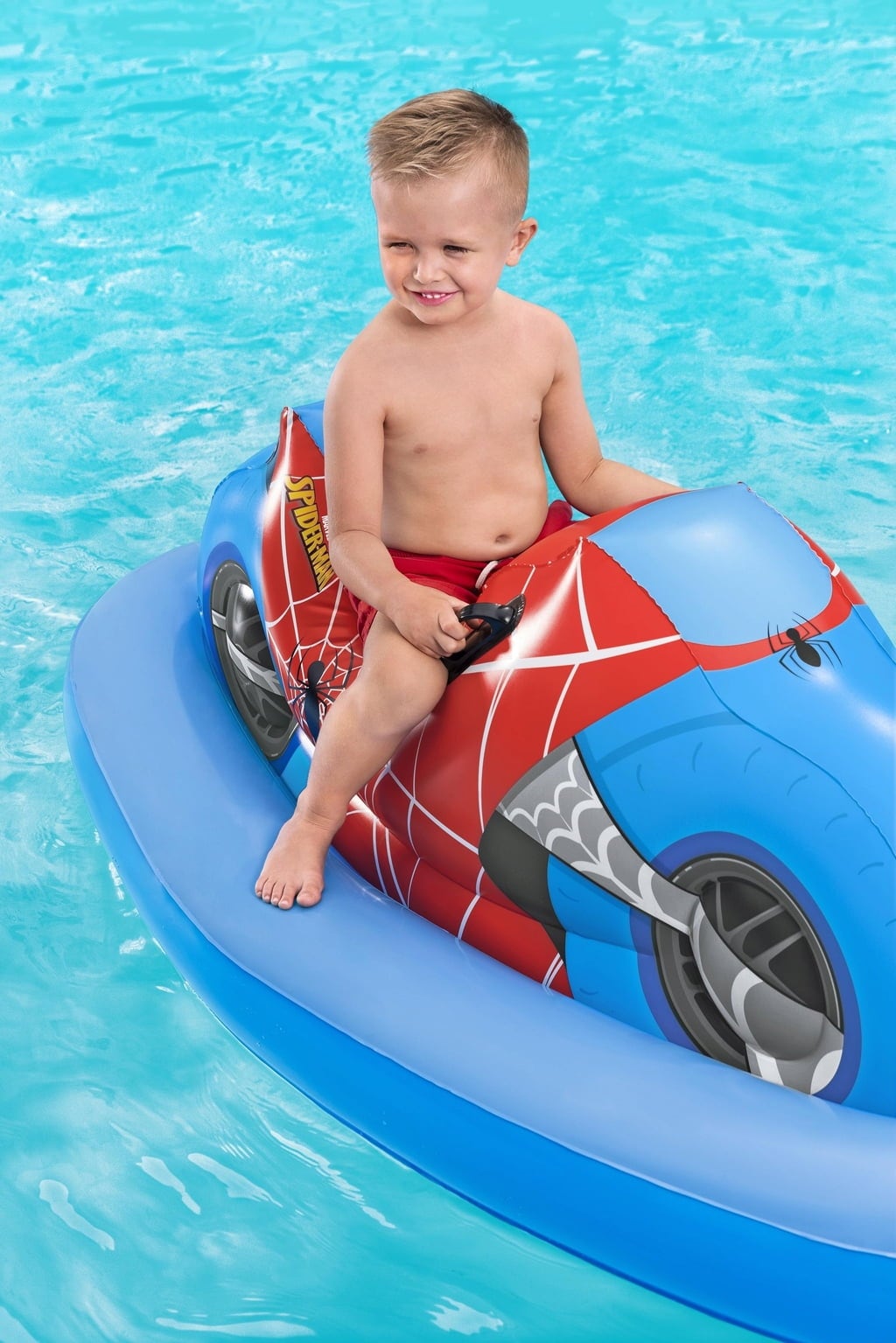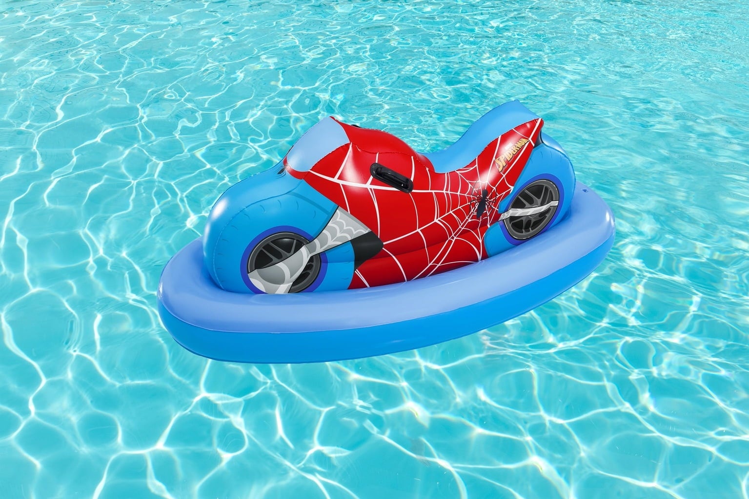 Con la moto hinchable Spider-Man™, puedes convertir cualquier piscina en una emocionante pista de carreras. Imagínate surcando el agua a toda velocidad en tu moto, ¡igual que tu amigo superhéroe Spider-Man!
