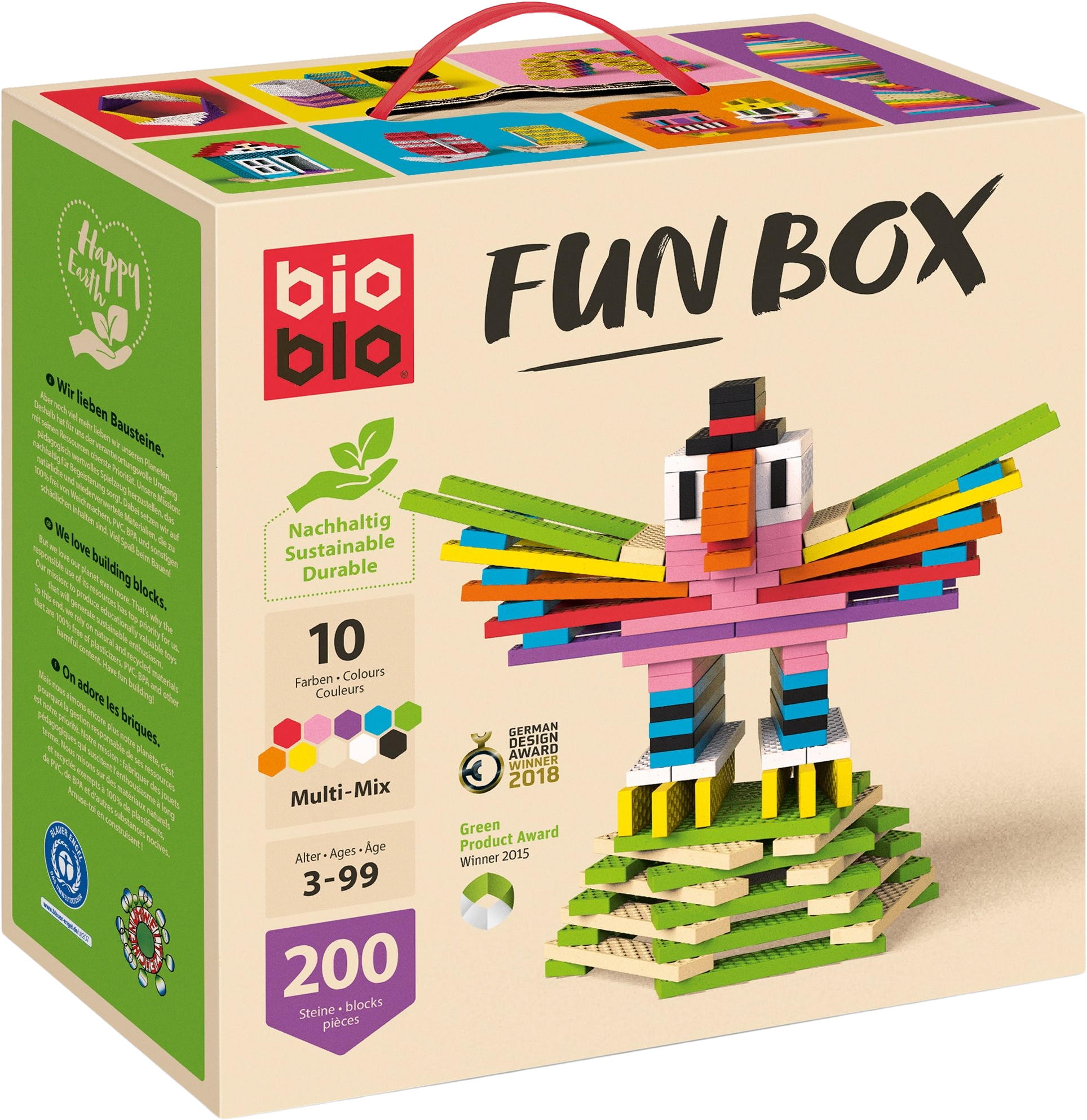 La FUN BOX 'Multi-Mix' de Bioblo ofrece una experiencia de construcción rica y envolvente. Con 200 ladrillos en diez colores brillantes, podrás crear construcciones imaginativas, solo o con amigos. La práctica asa hace que la caja sea fácil de transportar, para jugar en cualquier lugar, desde la guardería hasta la terraza o en casa de un amigo. Perfecta para ampliar la colección Bioblo o como idea de regalo.
