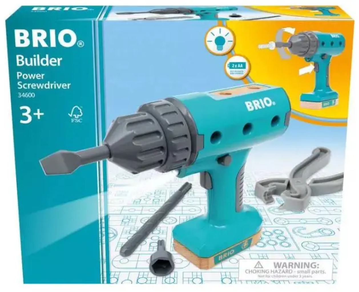 Con el atornillador inalámbrico BRIO Builder, todos los niños se convierten en pequeños manitas. Los tornillos y pernos se fijan y aflojan fácilmente gracias al funcionamiento con pilas. La linterna integrada hace que construir sea aún más divertido. Perfecto para juegos de rol imaginativos y para combinar con otras herramientas BRIO Builder.