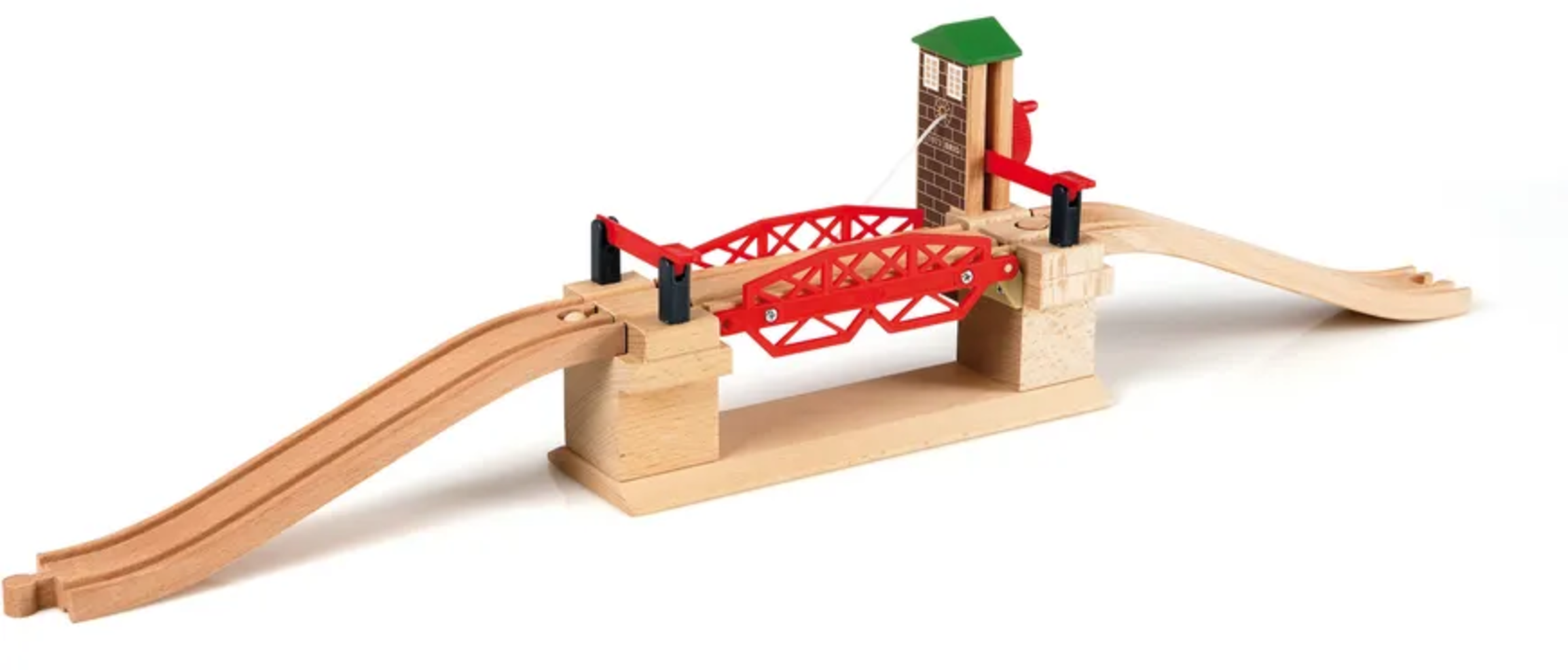 Cuando el barco se acerca, las barreras se cierran. Ahora todos los trenes deben esperar. Gira la manivela y el puente se eleva para que el barco pueda pasar con seguridad.