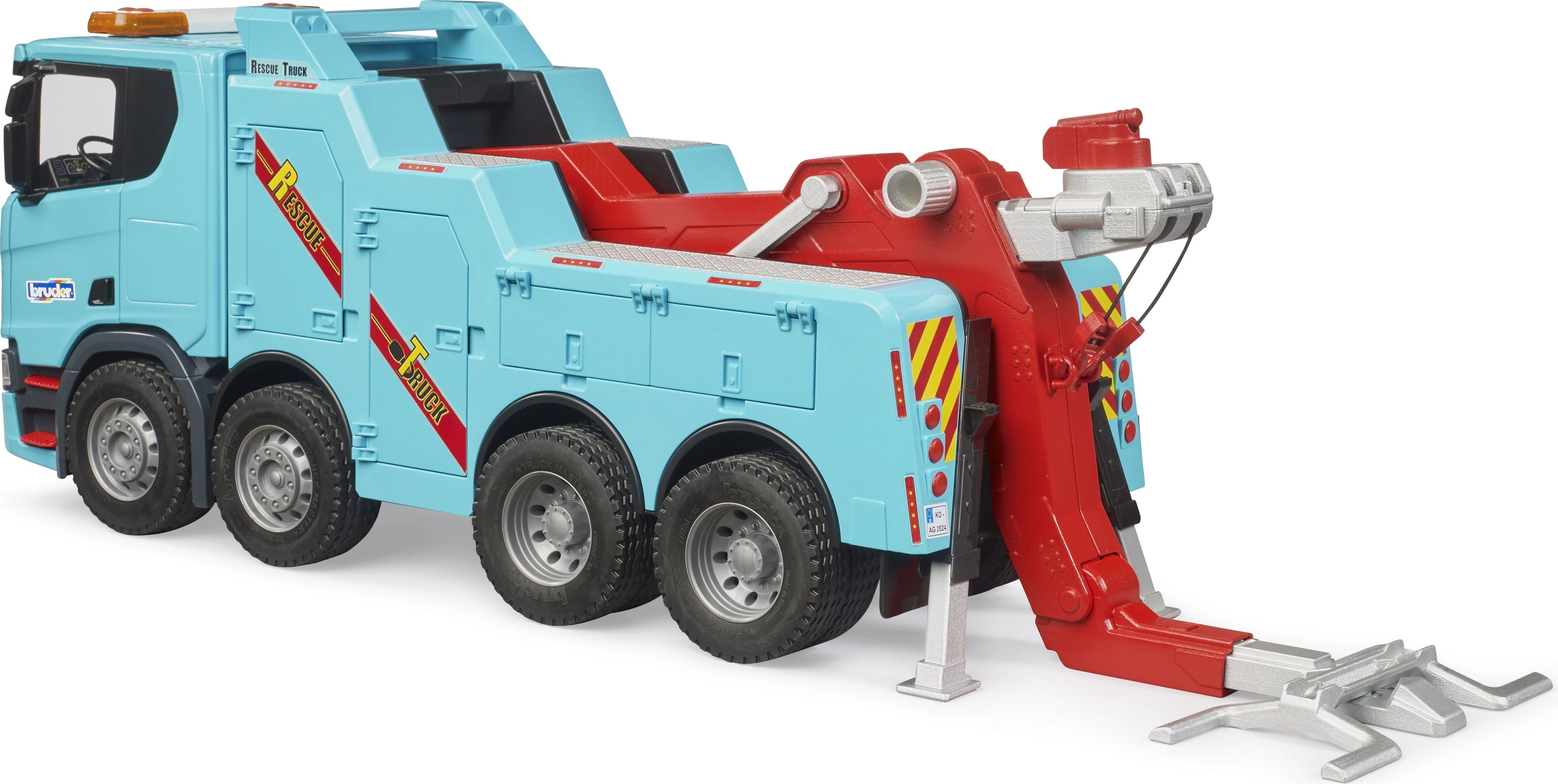 El detallado camión grúa Scania Super 560R es el héroe imbatible en todas las autopistas de juguete. Equipada con un potente brazo de grúa y gafas de remolque abatibles, está lista para ayudar a cualquier vehículo a salir de un atasco. El fantástico módulo de luz y sonido hace que su funcionamiento sea especialmente realista y emocionante.