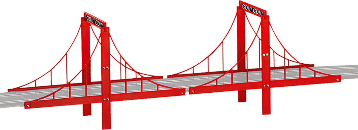Con el Set de Puente Carrera GO!!!, puedes añadir una nueva dimensión a tu circuito, creando un circuito emocionante con cambios de elevación. El puente te permite cruzar el circuito y crear configuraciones aún más emocionantes.