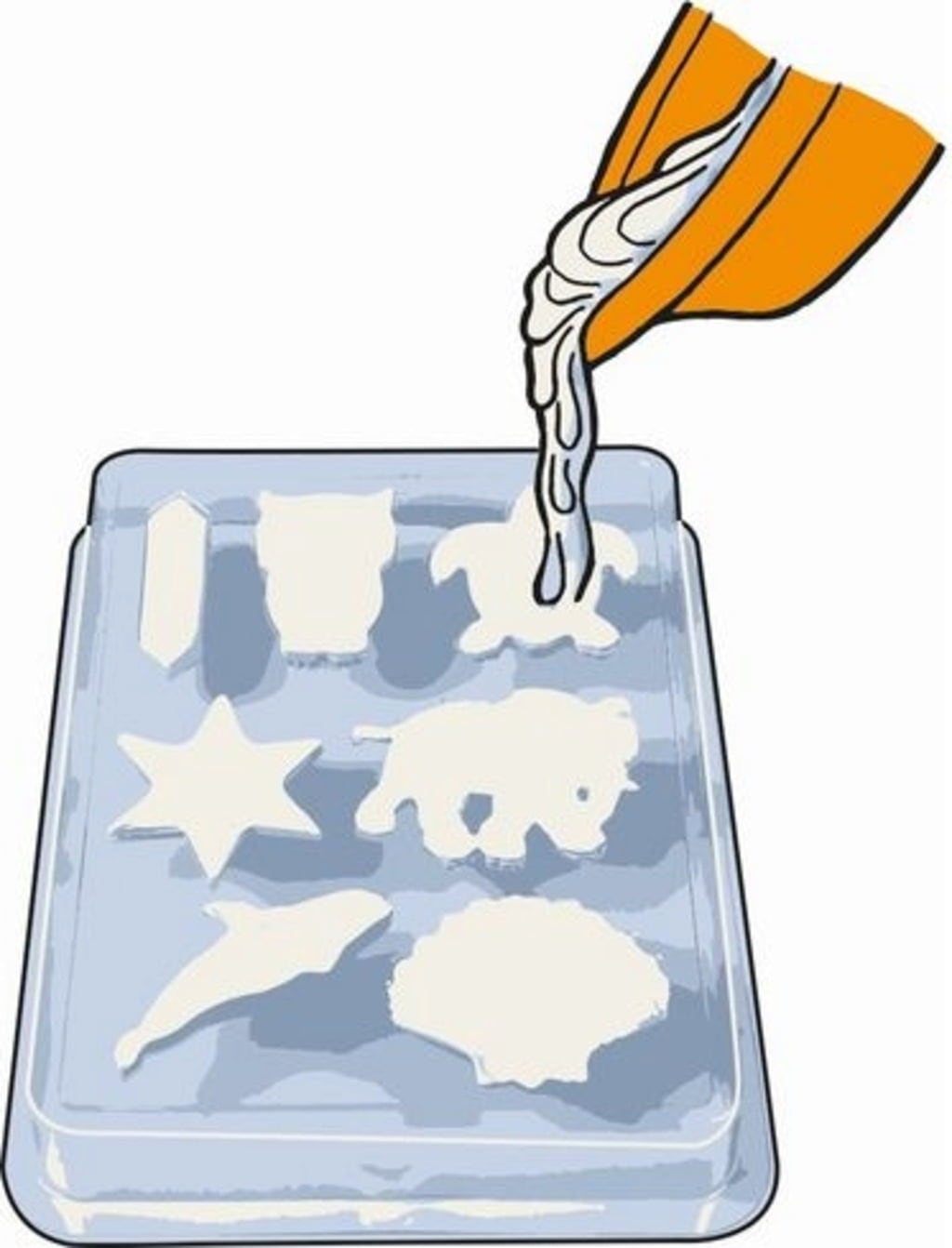 ¡Crea diferentes cristales que brillan en la oscuridad! Primero, rellena los moldes de plástico con la mezcla de tiza. Después, despega las figuras y píntalas con pintura que brilla en la oscuridad. Los cristales terminados iluminan tu habitación y también son un regalo estupendo para familiares y amigos.