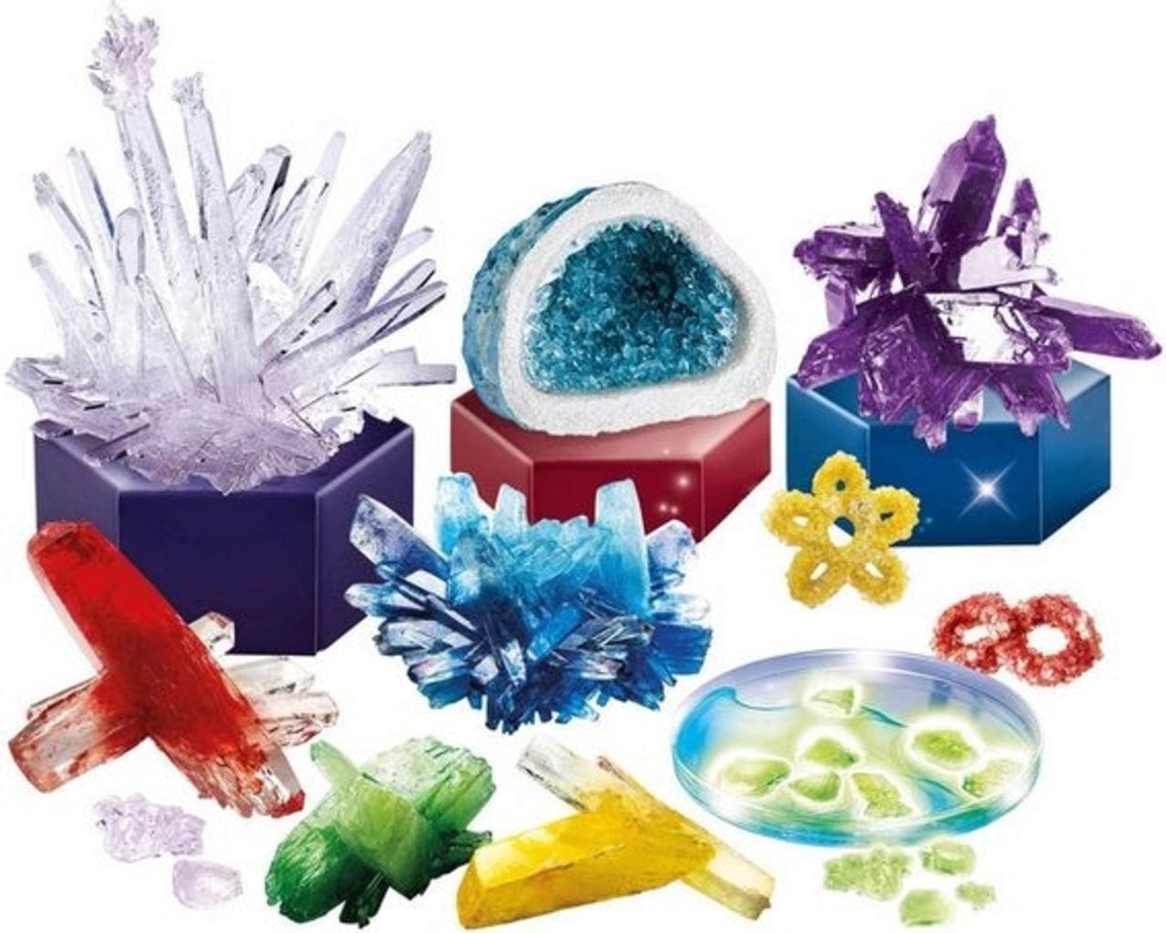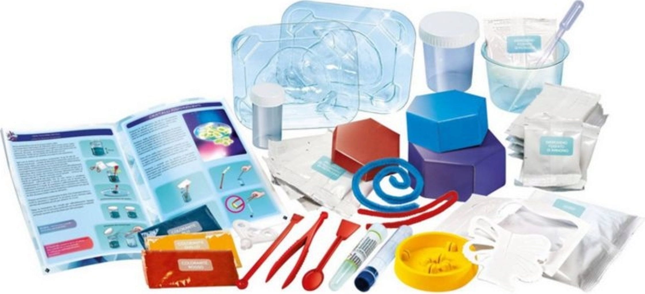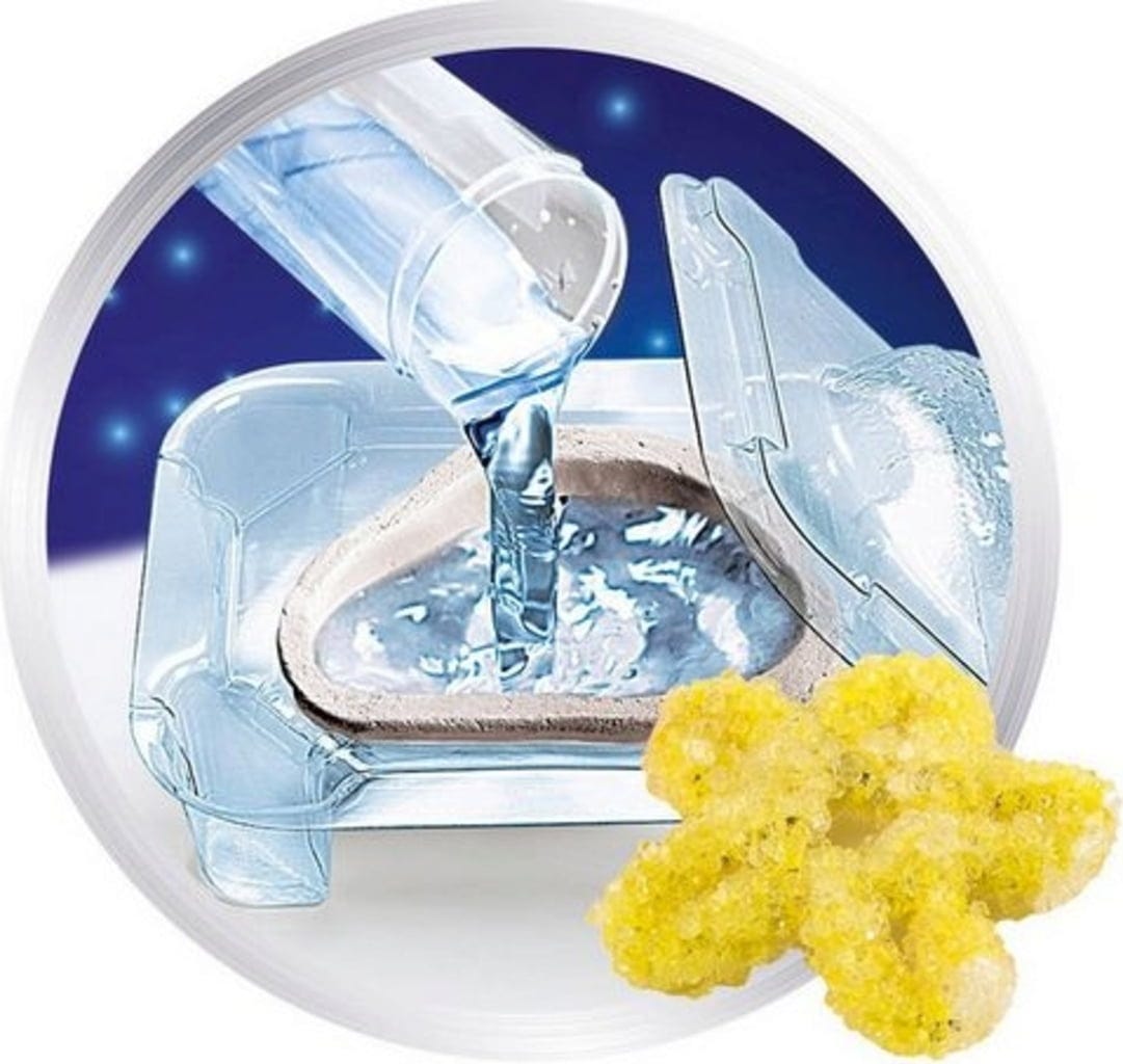 ¡Sumérgete en un mundo mágico! Con este completo set, los investigadores potenciales podrán realizar fascinantes experimentos por su cuenta y crear un deslumbrante mundo de cristales. Flores deslumbrantes, cristales misteriosos que brillan en la oscuridad o cristales gigantes y coloridos: ¡tu imaginación no tiene límites!