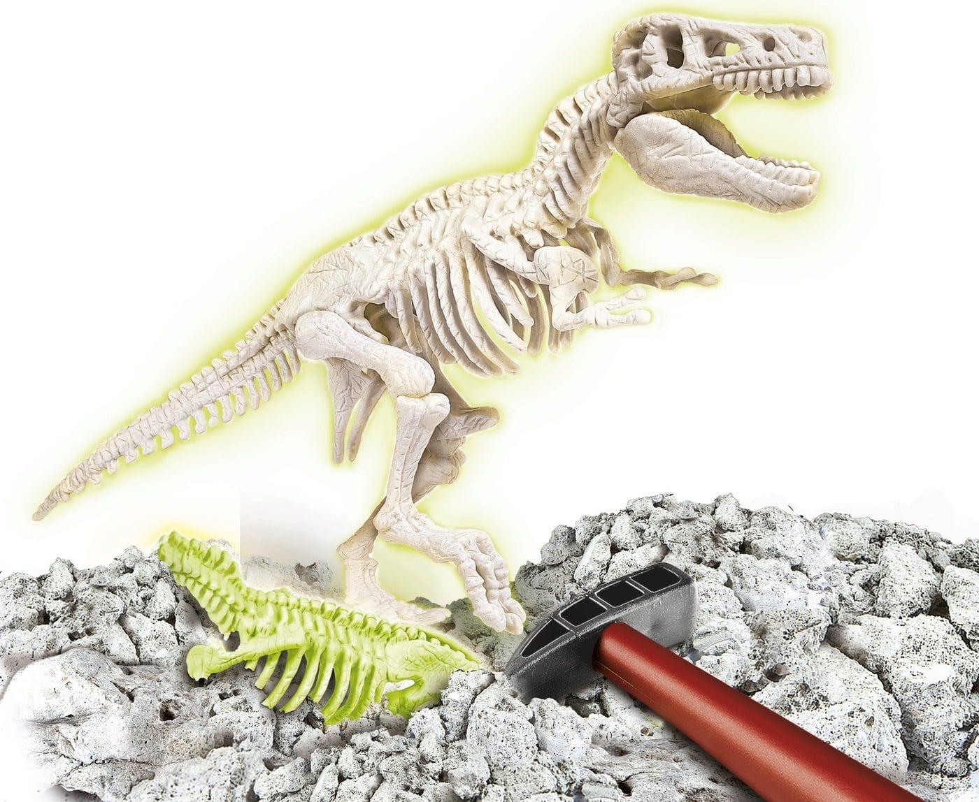 ¡Este exclusivo set científico emocionará a los pequeños paleontólogos! Primero se desentierran los huesos y, con un poco de habilidad, se pueden ensamblar los hallazgos para construir un impresionante esqueleto de T-Rex que brilla en la oscuridad.