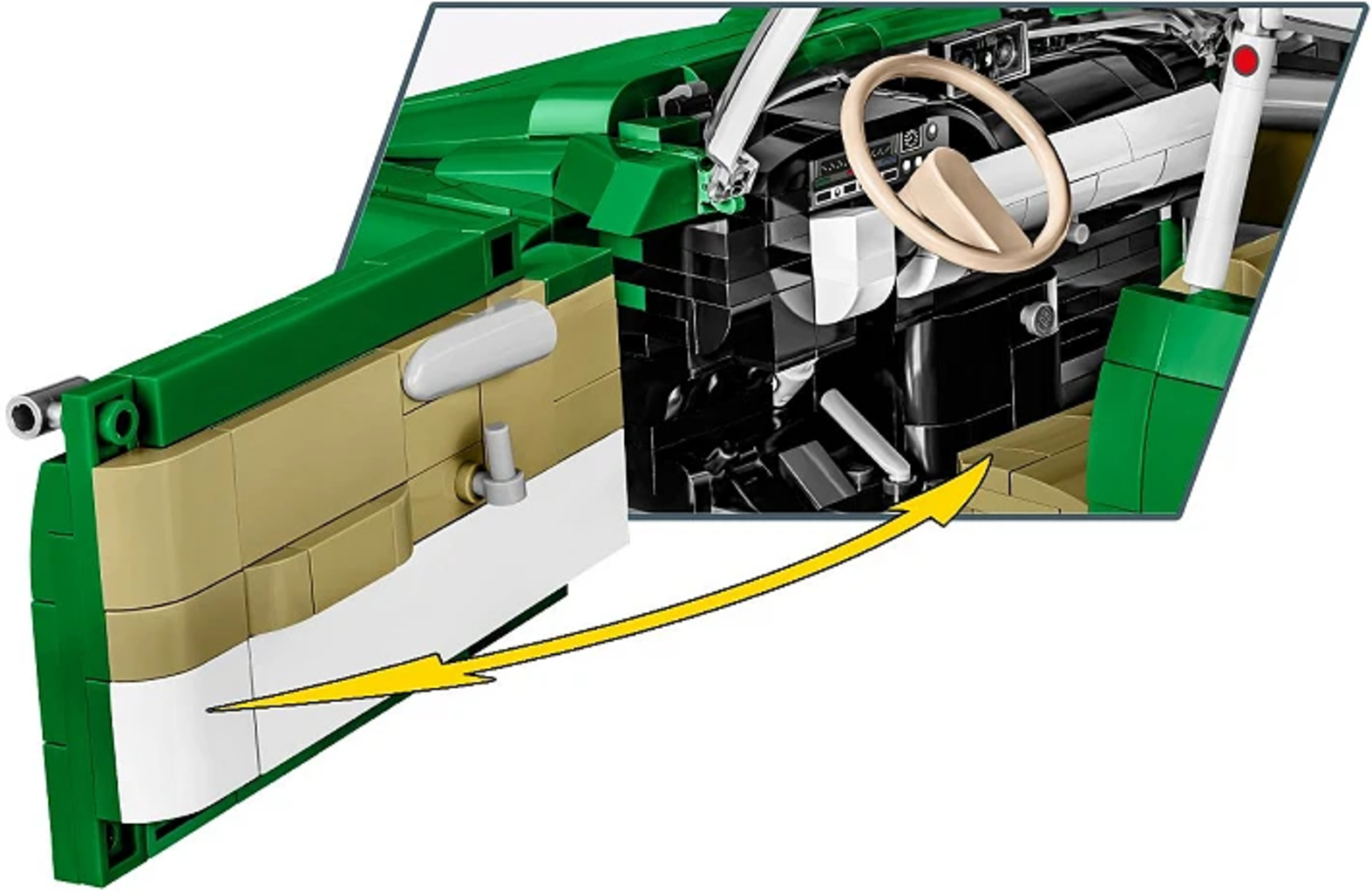 Elementos especialmente desarrollados, como el inconfundible parabrisas, garantizan un nivel de precisión digno de una pieza de museo. Gracias a las impresiones de alta calidad y al interior meticulosamente detallado, no se construye simplemente un coche, sino un auténtico símbolo de la historia del automóvil. Ladrillo a ladrillo, toma forma un clásico atemporal, capaz de conquistar a aficionados y coleccionistas por igual.