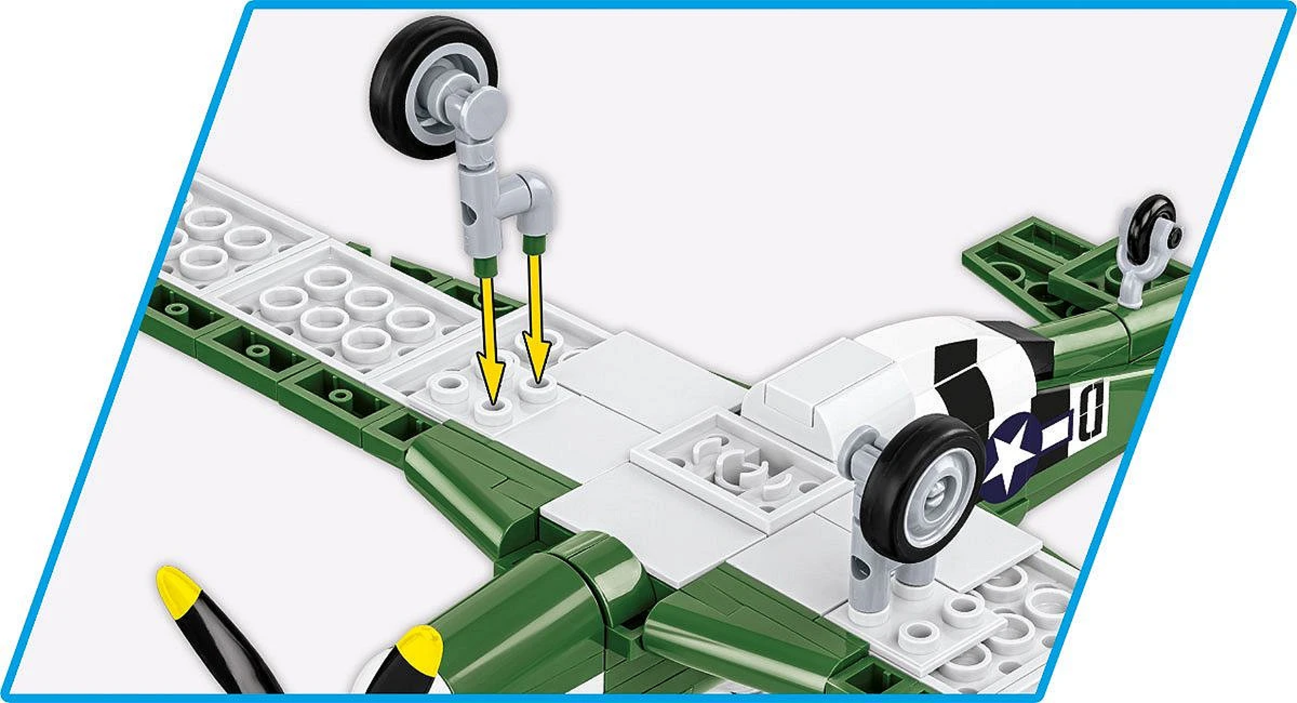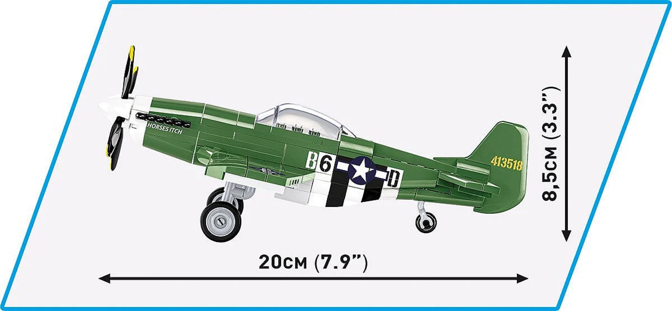 El legendario P-51D Mustang cobra vida en una maqueta compacta y detallada fabricada con 152 ladrillos de alta calidad. La cuidada reproducción de la librea histórica realza las elegantes líneas de uno de los aviones más emblemáticos de la historia.