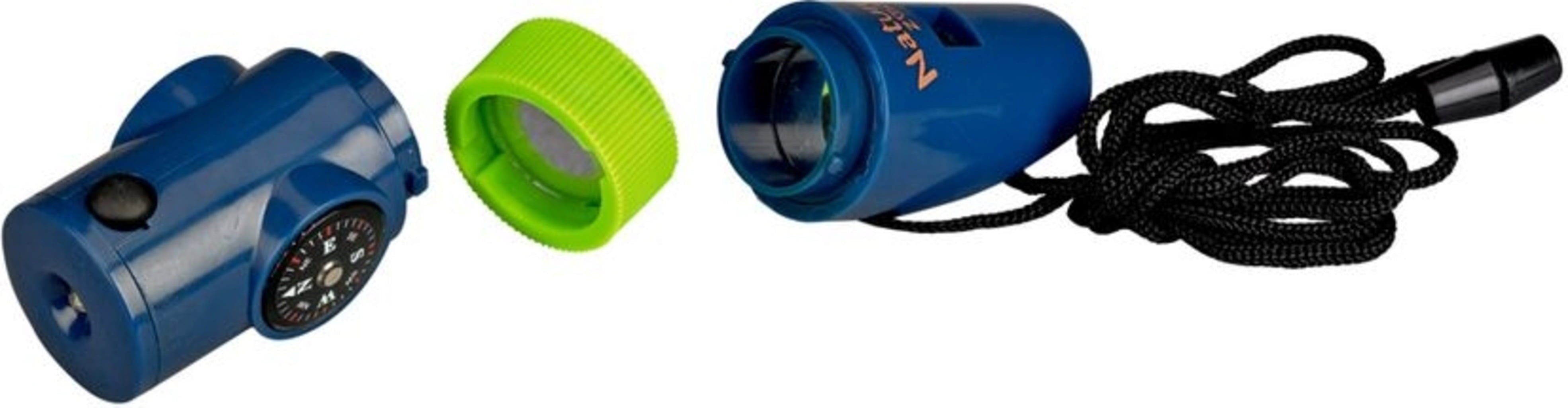 Características: silbato, lupa, brújula, termómetro, luz, espejo.