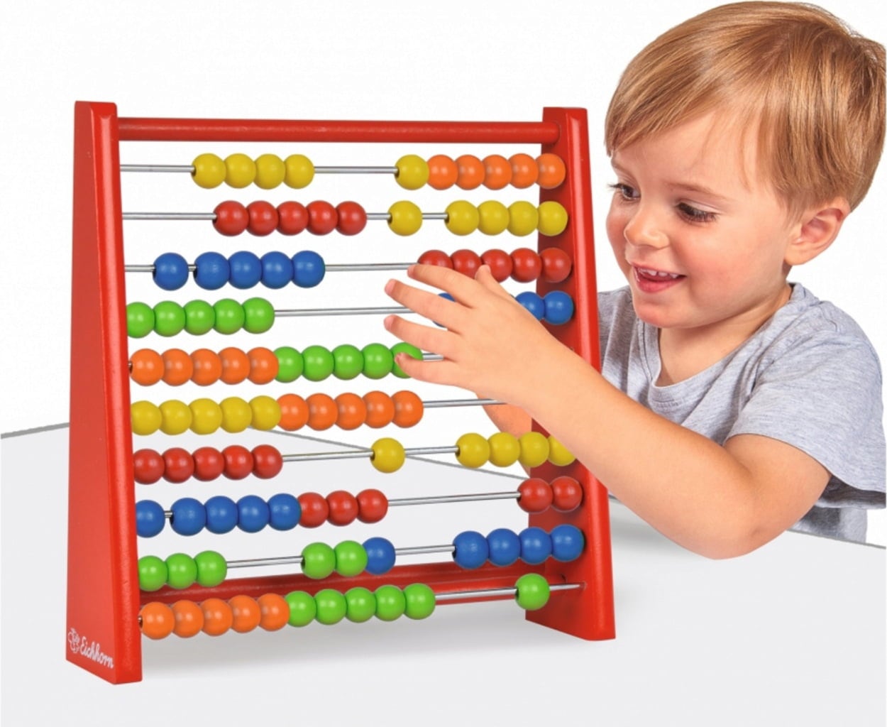 Con este colorido ábaco, los niños pueden sumergirse jugando en el mundo de las matemáticas. Las 100 bolas de madera de colores ayudan a sumar y restar.
