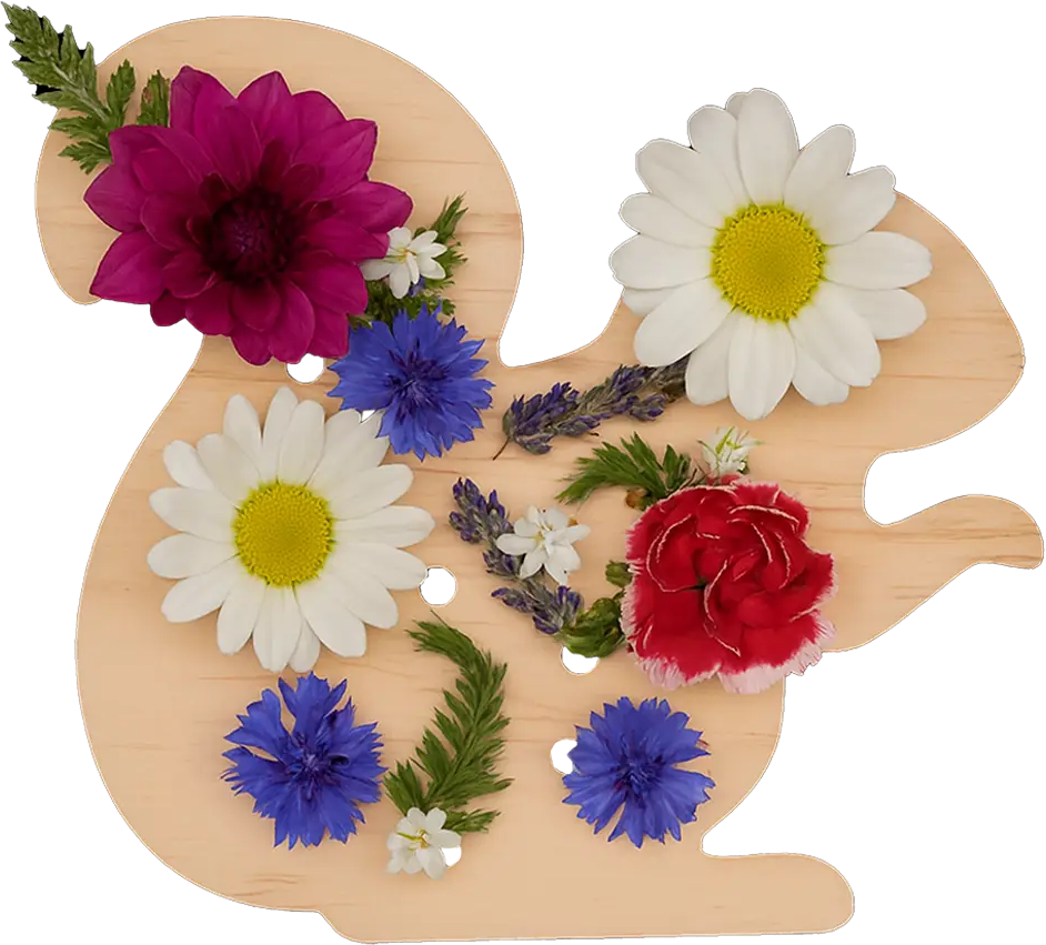 El portaflores de madera con forma de ardilla permite crear composiciones florales siempre nuevas y coloridas. Basta con insertar las flores recogidas en los orificios para obtener una decoración natural de gran efecto visual.