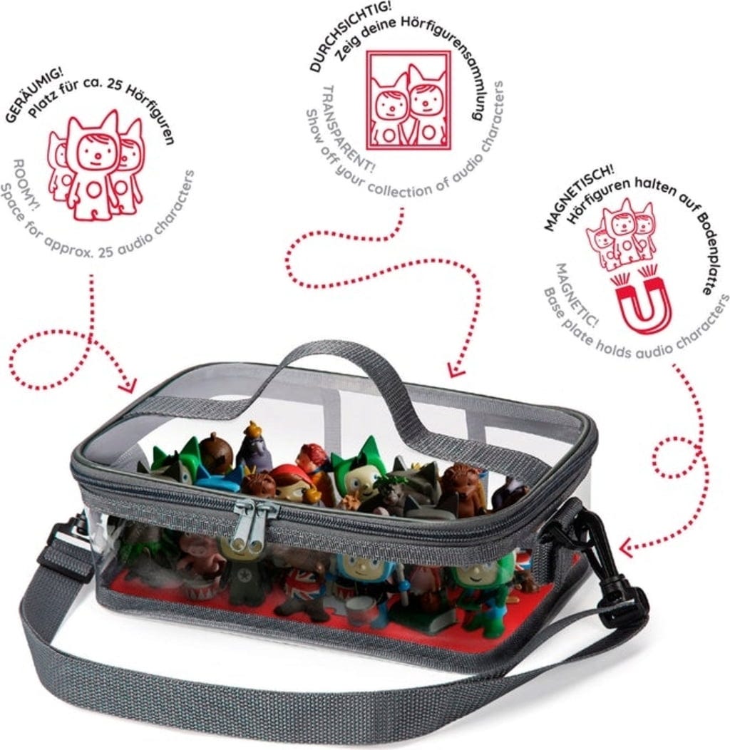 En esta bolsa se pueden guardar y transportar de forma segura hasta 30 Tonies y, gracias a la base magnética, cada uno estará bien sujeto en su sitio. Los laterales transparentes permiten tener siempre a la vista la colección y encontrar mucho más rápido los personajes que se buscan. Esta bolsa también se puede combinar en unos sencillos pasos con la bolsa Fantifant Toniebox.