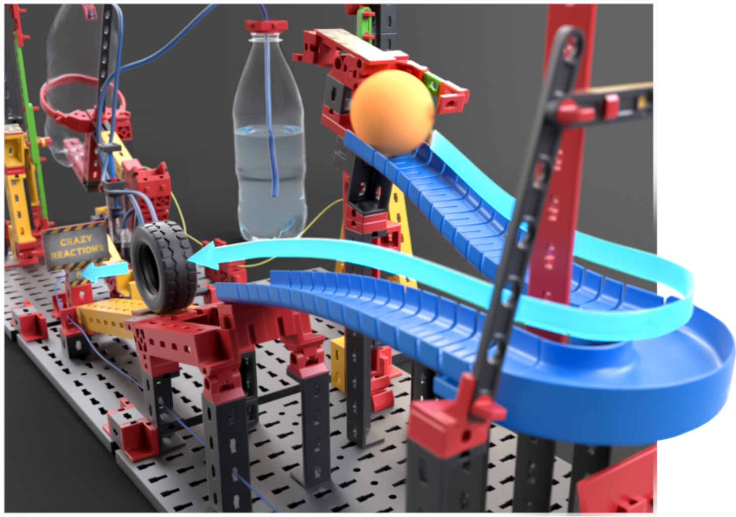 Con Crazy Reactions, los niños experimentan reacciones en cadena llenas de movimiento. Una señal activa una secuencia de mecanismos en los que cuerdas, palancas y engranajes interactúan. Al integrar objetos cotidianos, los modelos se pueden expandir libremente, dejando espacio a la imaginación. Un set educativo y dinámico diseñado para pequeños ingenieros.