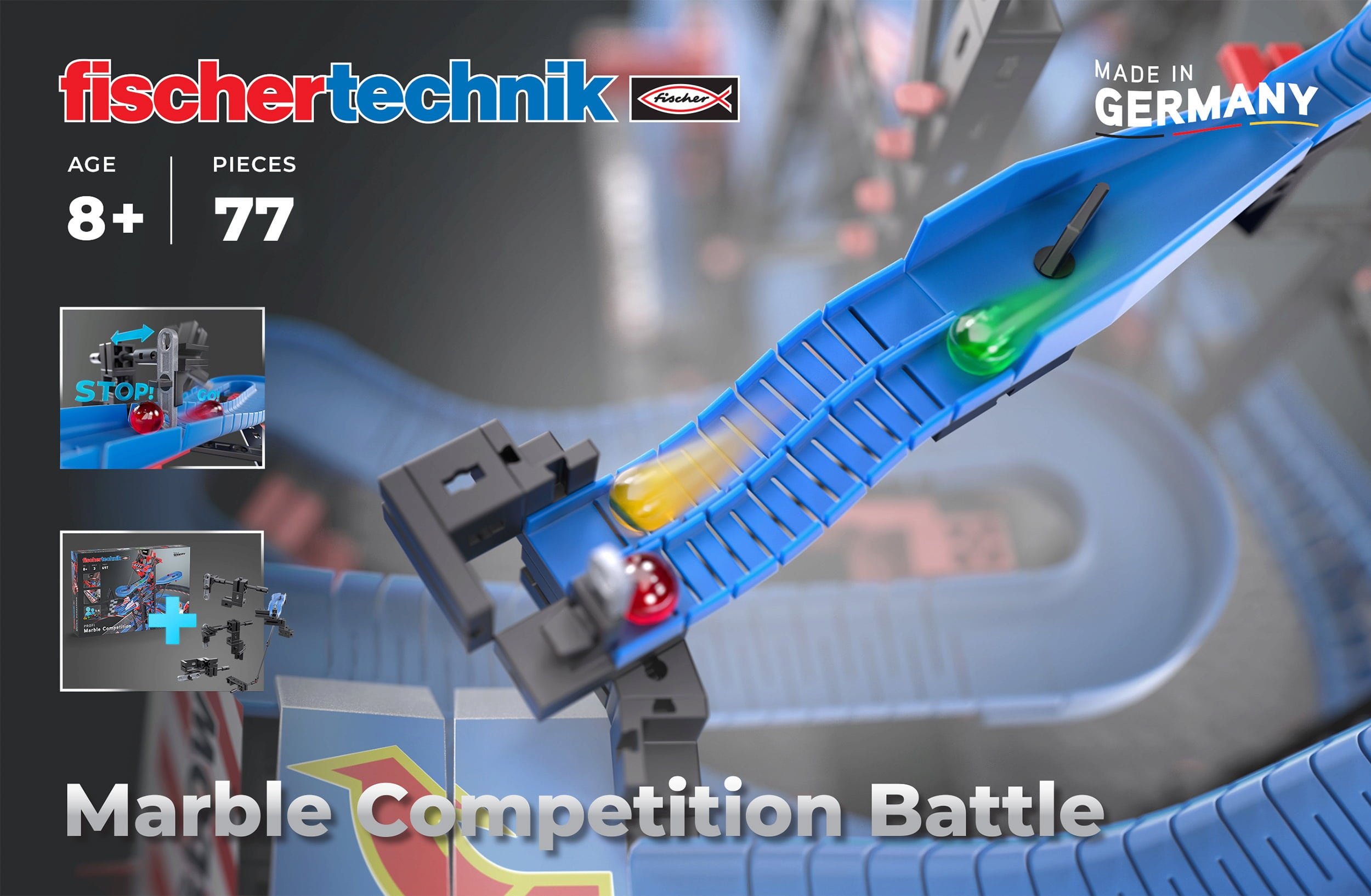 Con la Marble Competition Battle, cada carrera se vuelve aún más intensa. Hasta cuatro jugadores pueden intervenir activamente en el recorrido y desafiar a sus oponentes con obstáculos bien colocados. Esta interacción aumenta la tensión y crea desafíos realmente apasionantes. Ideal para llevar los modelos de Marble Competition al siguiente nivel y vivir emocionantes competiciones con amigos y familiares.