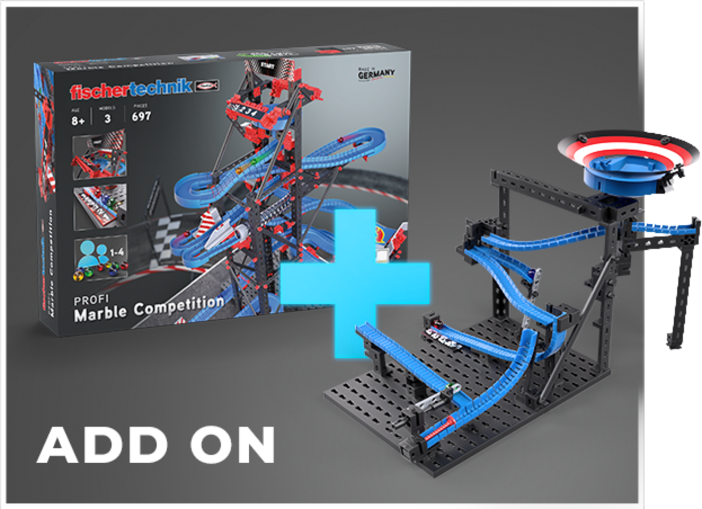 Con Marble Competition Booster cada carrera de canicas se vuelve aún más emocionante. Las canicas deben superar obstáculos y desvíos y averiguar quién llegará primero a la meta. Puedes usarlo como juego independiente o como ampliación de tu pista de Marble Competition para añadir nuevos retos y momentos competitivos.