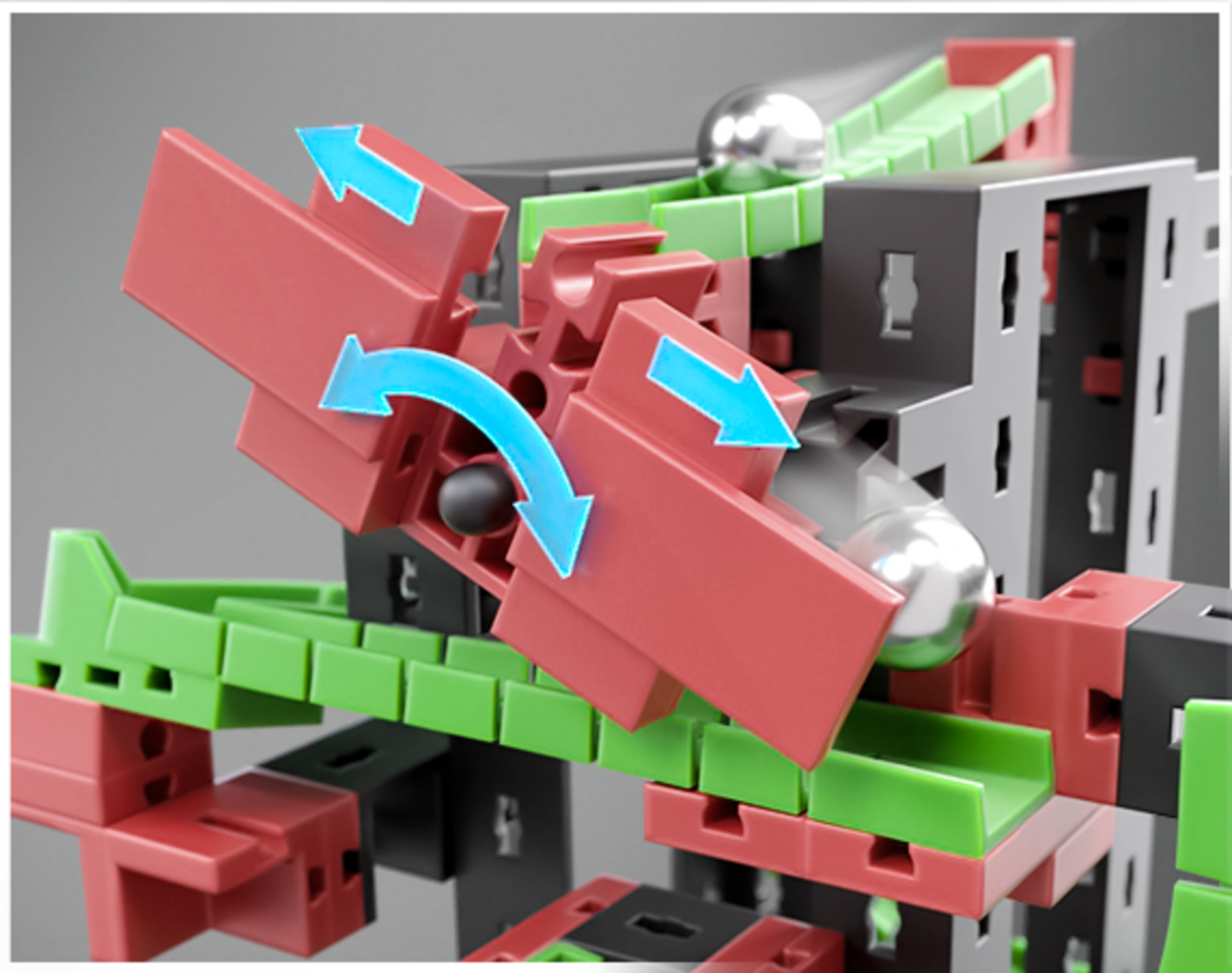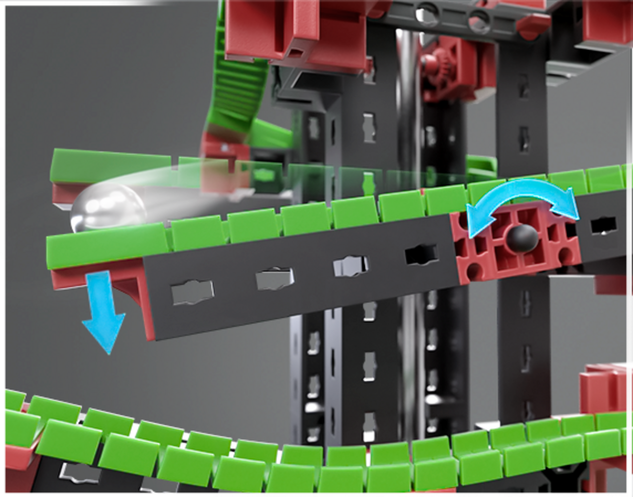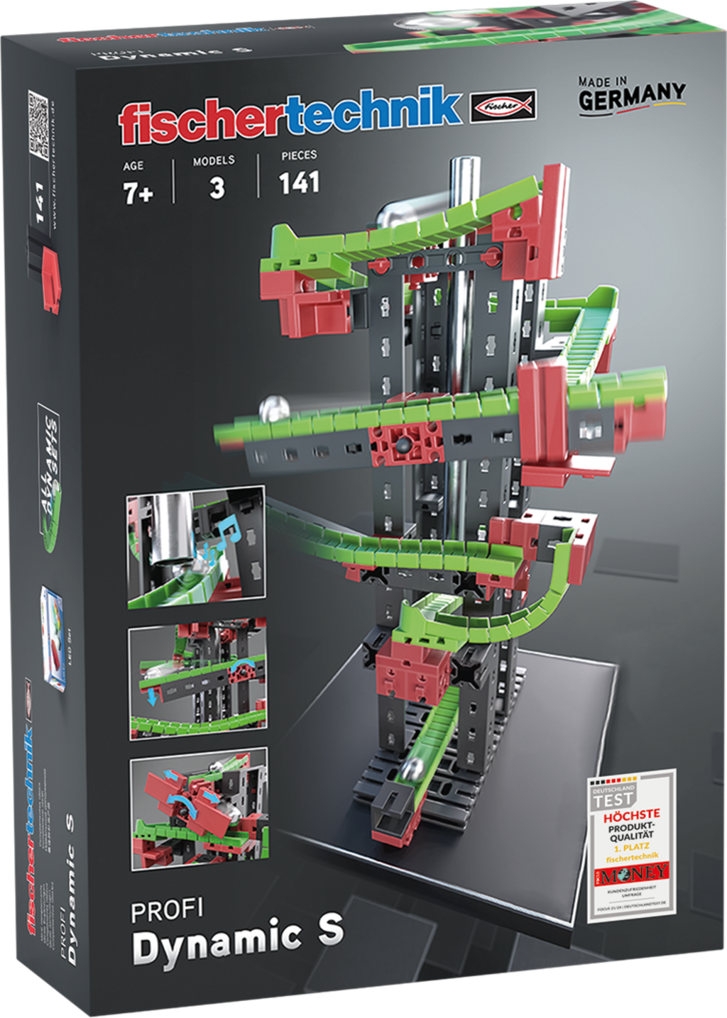 Descubre el mundo de las pistas de canicas con PROFI Dynamic S. Las canicas zumban a lo largo de columpios, curvas y tubos sonoros, todo construido paso a paso. Los niños pueden seguir los patrones sugeridos o crear sus propios caminos, siempre cambiantes. Un juego lleno de acción, creatividad y fascinación técnica perfecto para los jóvenes constructores.