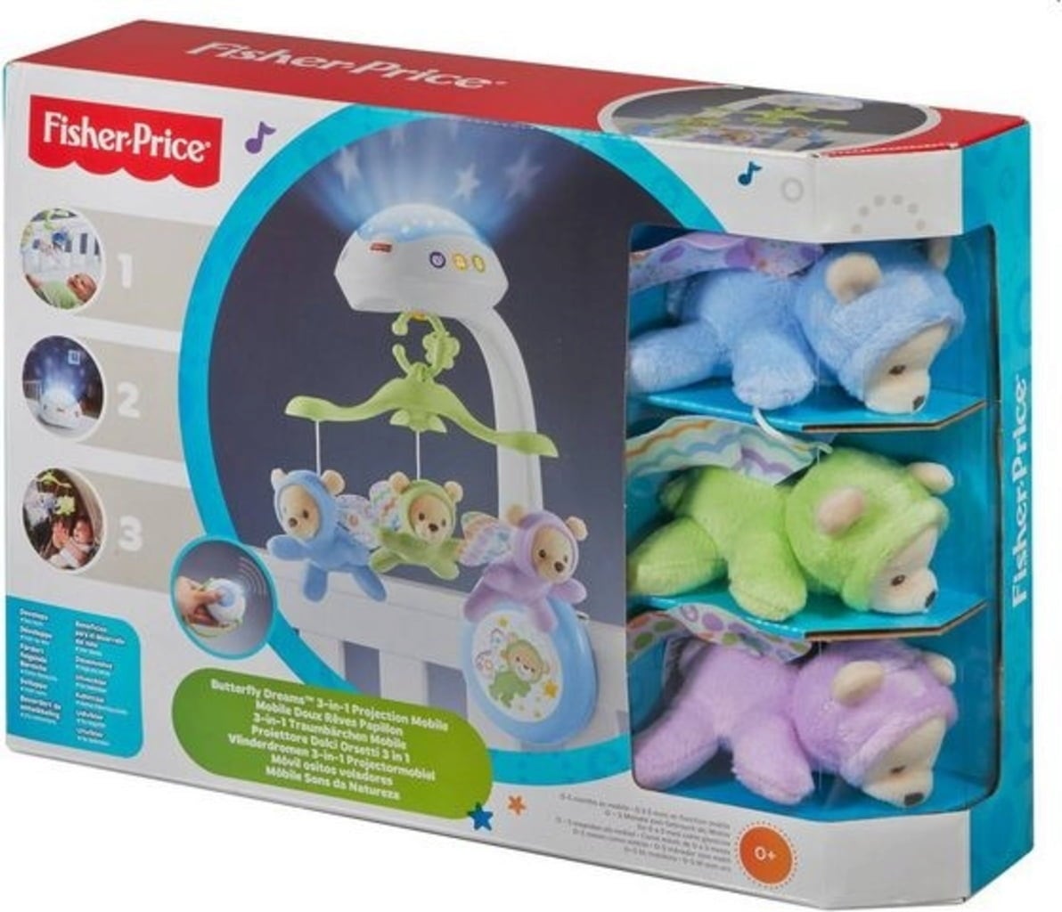 - Tres simpáticos osos mariposa entretienen al bebé y fomentan las habilidades visuales.