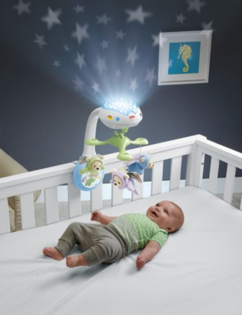 - Tres funciones prácticas: móvil para bebés, móvil musical con proyector de luz o móvil para cochecito.