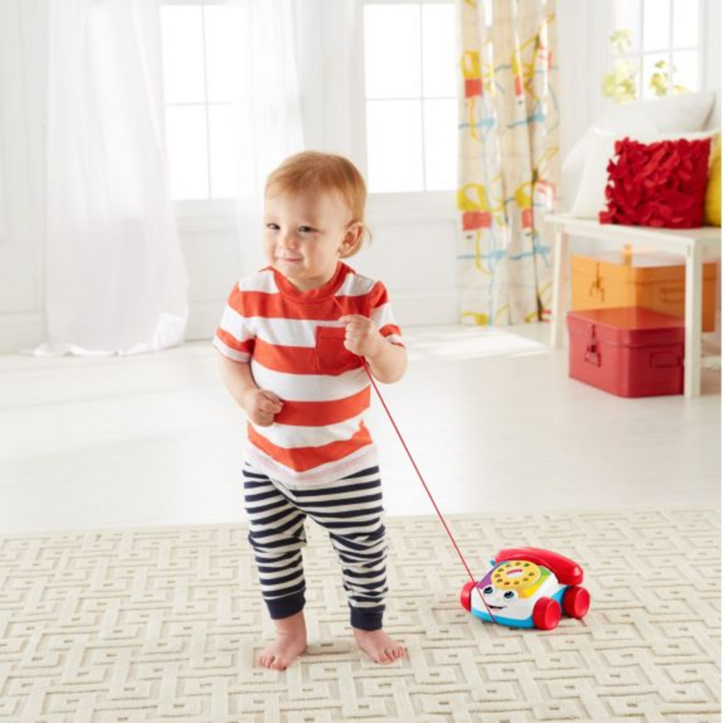 "Hola, ¿quién es?" La diversión está garantizada con este adorable teléfono. Cuando tiras de él, el teléfono empieza a murmurar alegremente y cuando le das la vuelta al disco, oyes un sonido de llamada. ¡Un juguete clásico que siempre pone de buen humor!
