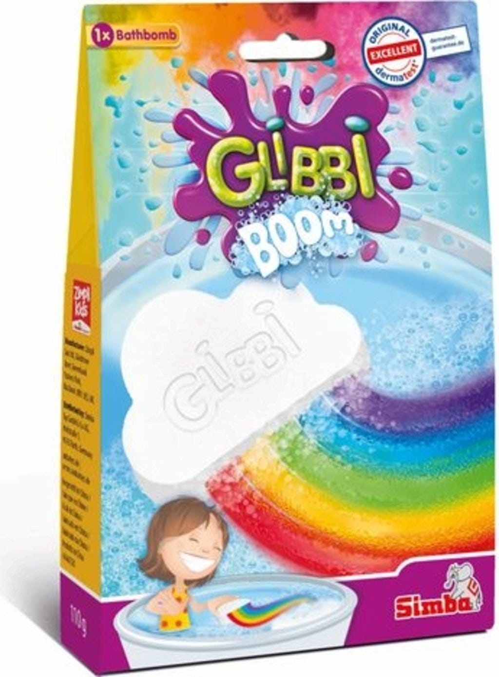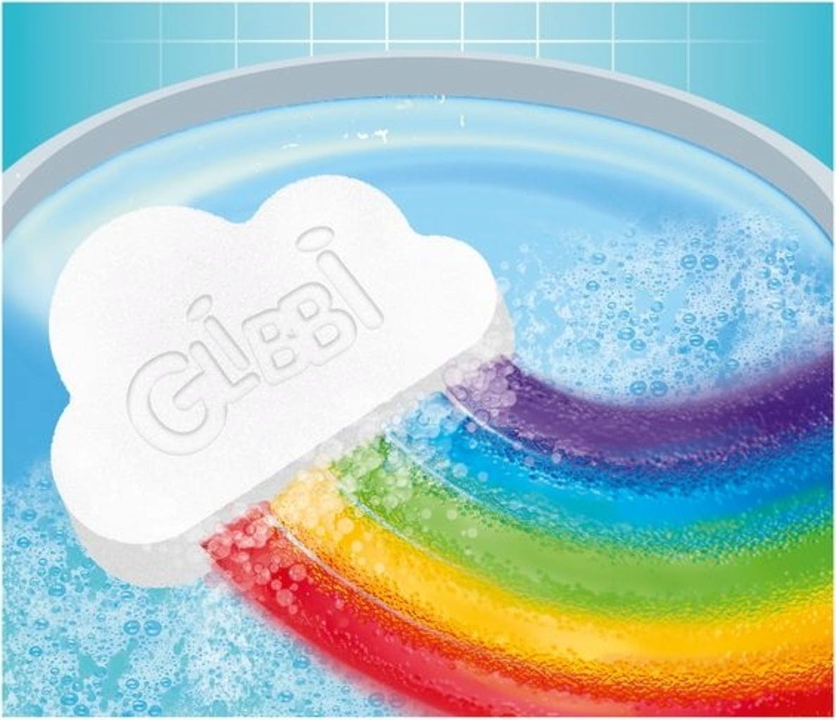 Vuela, arco iris de colores, ¡vuela! Si introduces la nube en el agua de la bañera, podrá ver cómo se crea un precioso arco iris de colores, un colorido espectáculo que dura unos 10 minutos. Probado por el instituto independiente Dermatest y considerado absolutamente inofensivo.