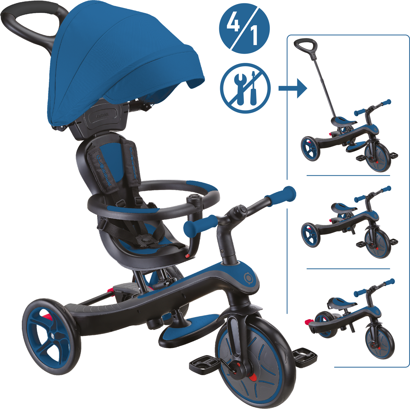 El EXPLORER TRIKE 4en1 acompaña a tu hijo en todas las etapas de su desarrollo motor: desde el primer triciclo de empuje hasta una bicicleta de equilibrio independiente. Gracias al sistema patentado 4 en 1, el vehículo puede convertirse en cualquier modo sin herramientas, lo que le permite crecer de forma flexible con las habilidades de su hijo.