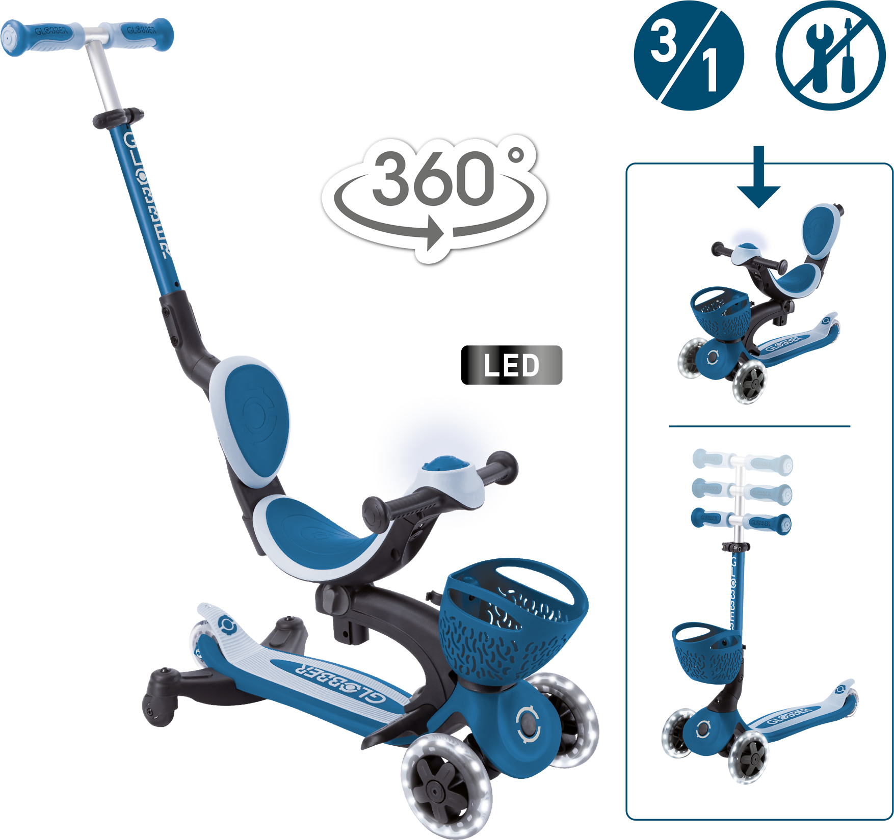 Globber Go-Up Baby 360 Lights, azul claro petróleo