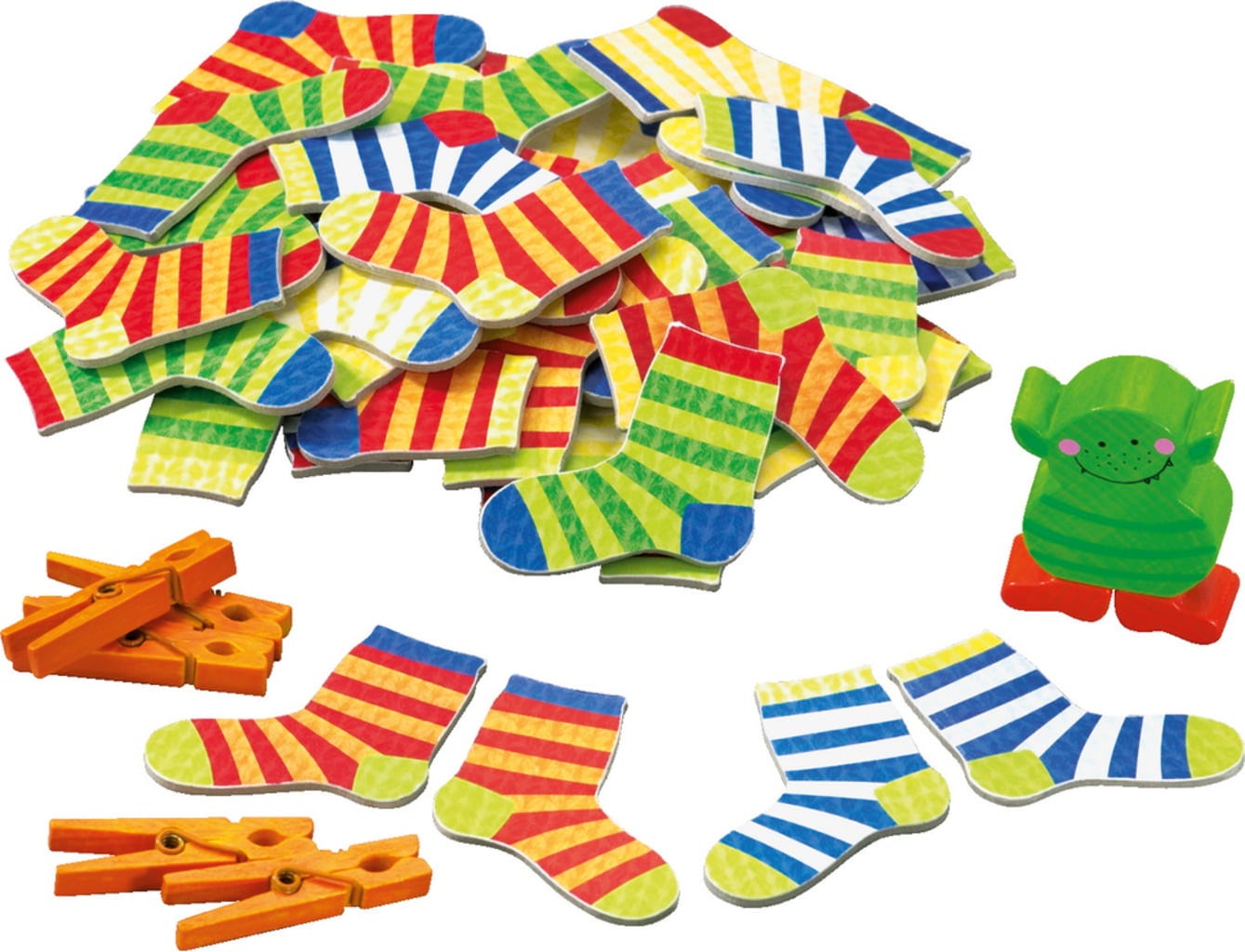 El descarado monstruo de los calcetines ha hecho de las suyas y ha dejado un enorme desorden en el armario. ¿Serás capaz de ordenar el caos y emparejar los pares correctamente? Pero cuidado: como todos están rebuscando en la montaña de calcetines al mismo tiempo, ¡los niños tienen que vigilar muy de cerca!