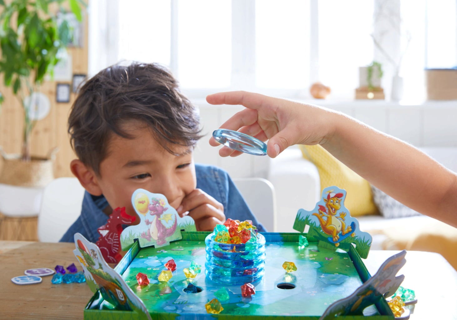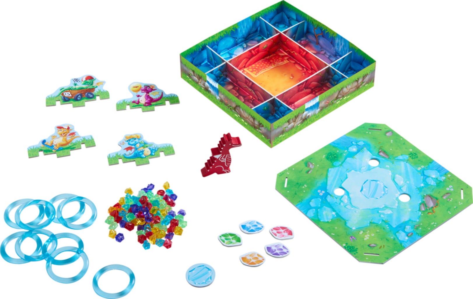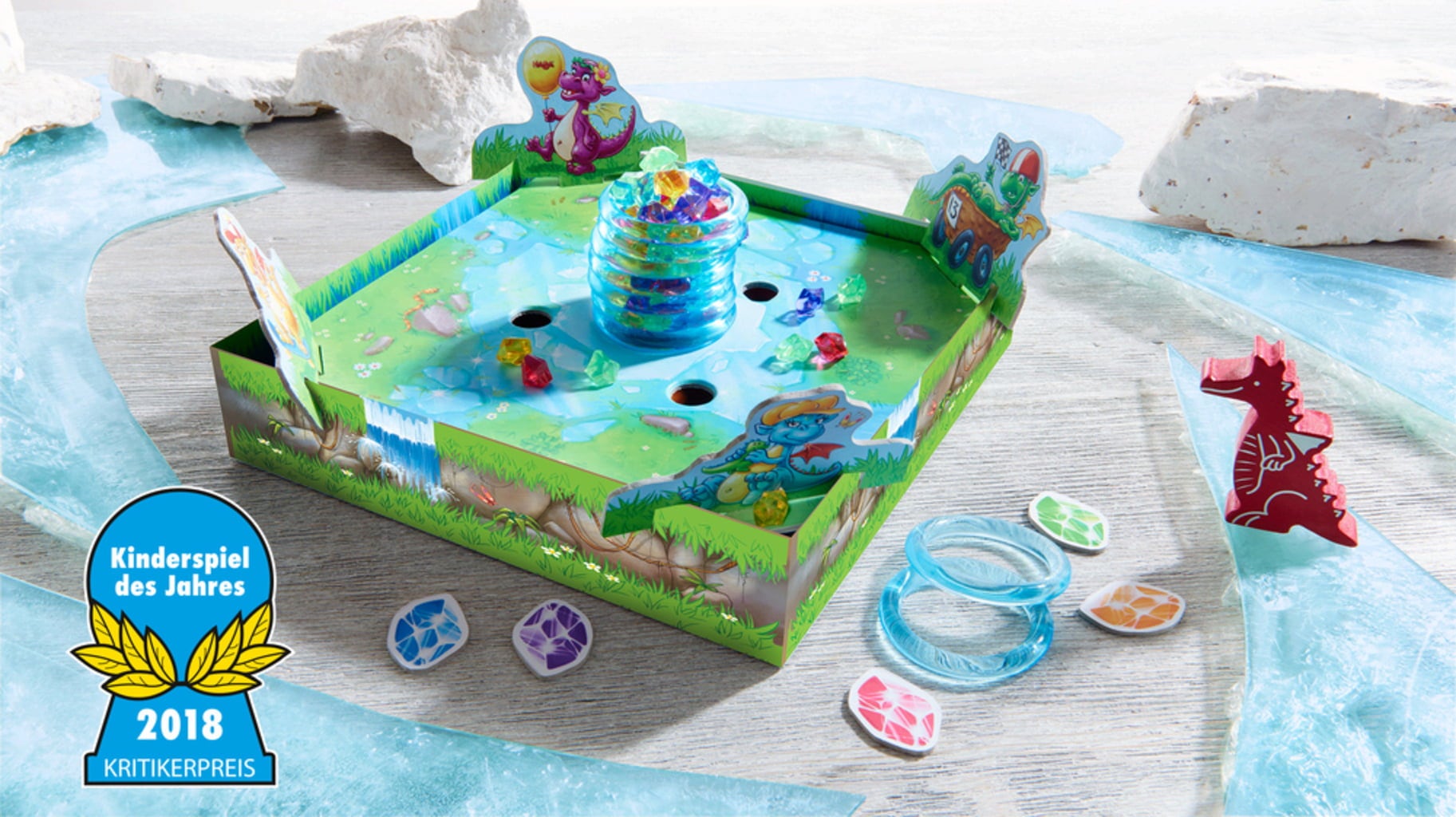 Durante una de sus expediciones, los pequeños dragones se topan con un tesoro: ¡preciosas piedras brillantes atrapadas en un témpano de hielo! Naturalmente, intentan agarrarlas de inmediato, pero, por desgracia, no es tan fácil. Deben quitar los anillos de hielo uno a uno para derretir el témpano y liberar las piedras brillantes. El jugador con más piedras al final será el ganador de esta feroz competencia.