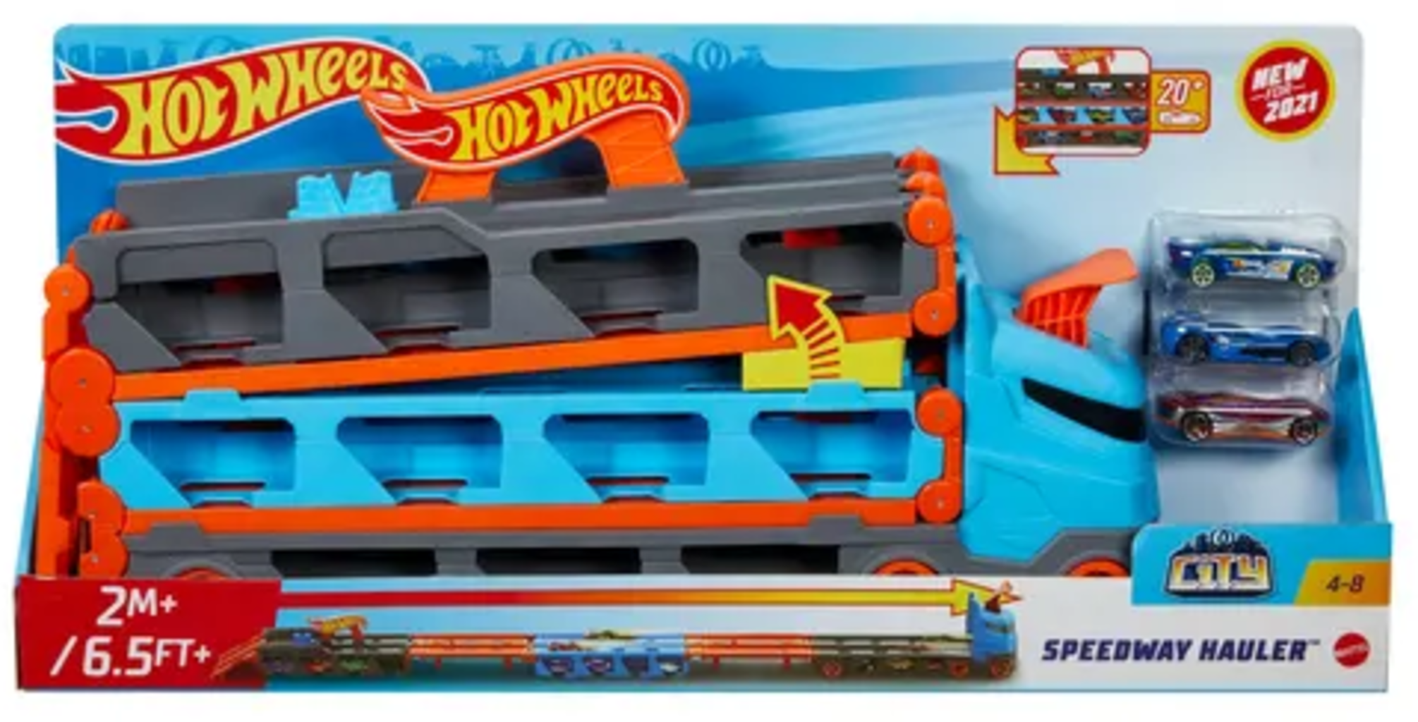 Hot Wheels Camión Transportador y Pista 2 en 1