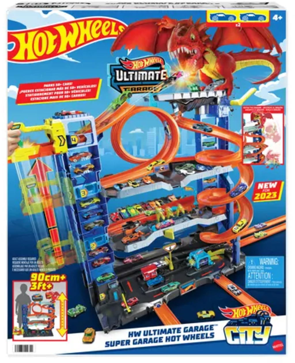 Experimenta la máxima diversión en la pista con el Garaje Definitivo. Repartido en cuatro niveles, ofrece trepidantes carreras cara a cara, espeluznantes acrobacias en bucle e incluso duelos épicos contra un peligroso dragón. Además, en él se pueden aparcar más de 50 coches a escala 1:64.