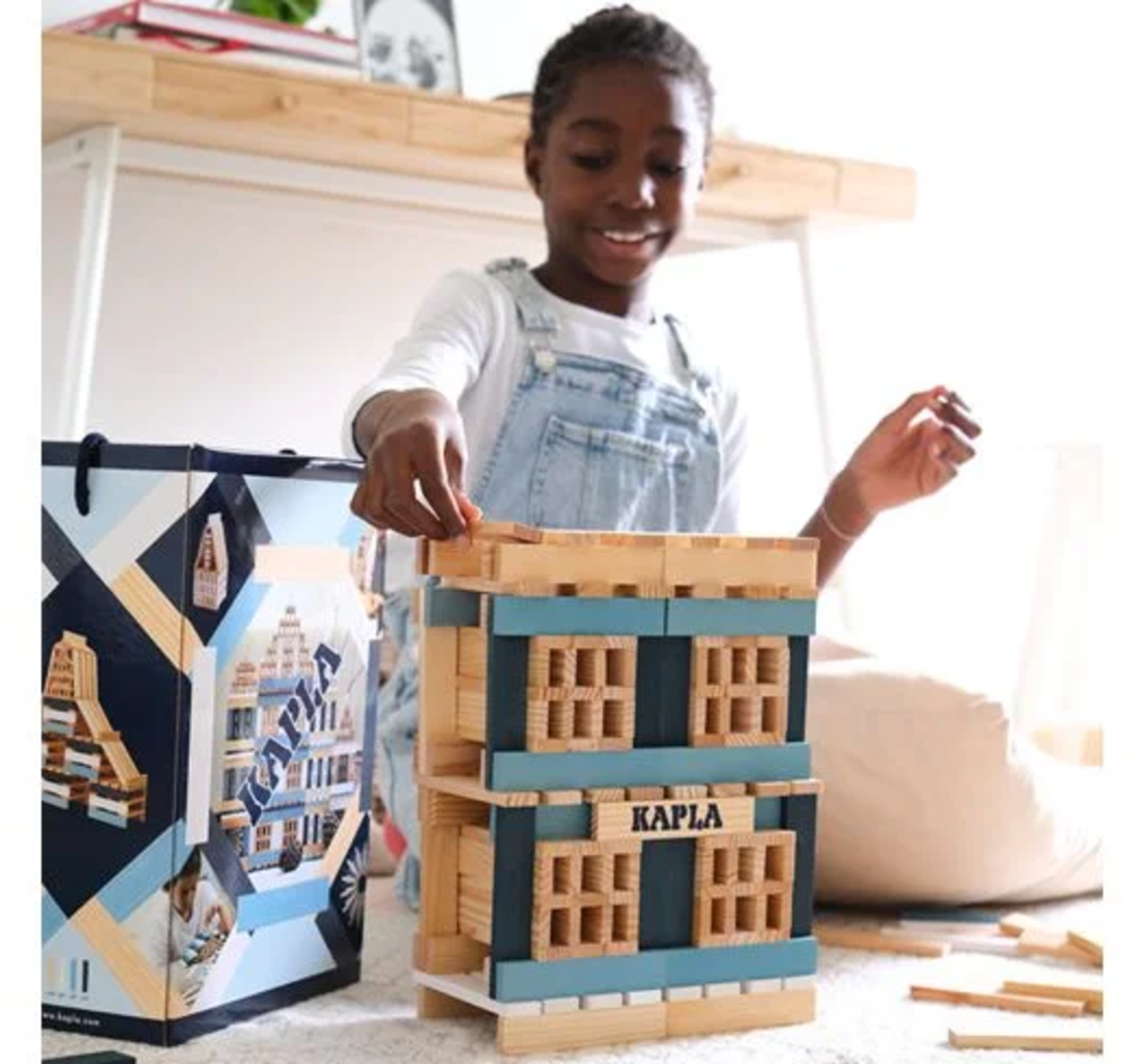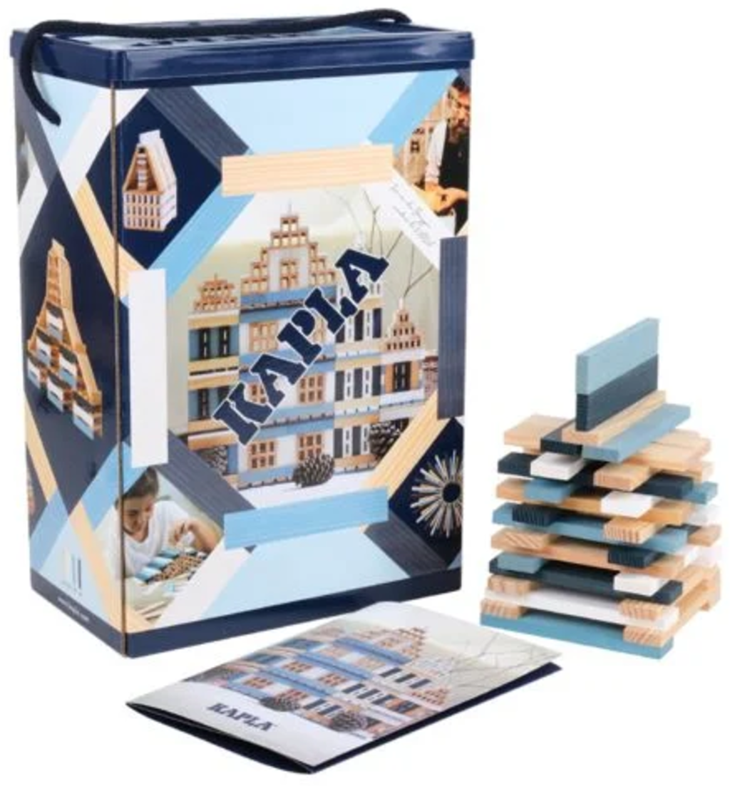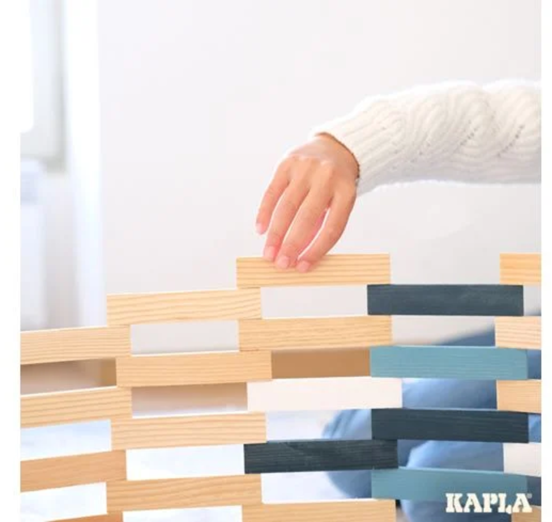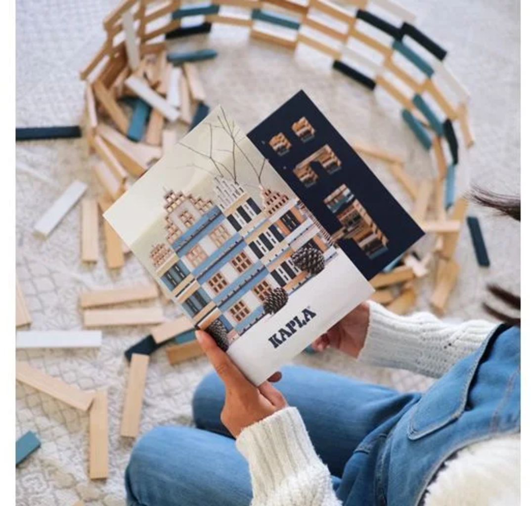 Estos bloques de madera de KAPLA son perfectos para poner a prueba tus habilidades de construcción. Con 200 piezas en tonos azules invernales, puedes construir casas o torres de diversas formas. ¡Pero cuidado! ¡Que nada se derrumbe!