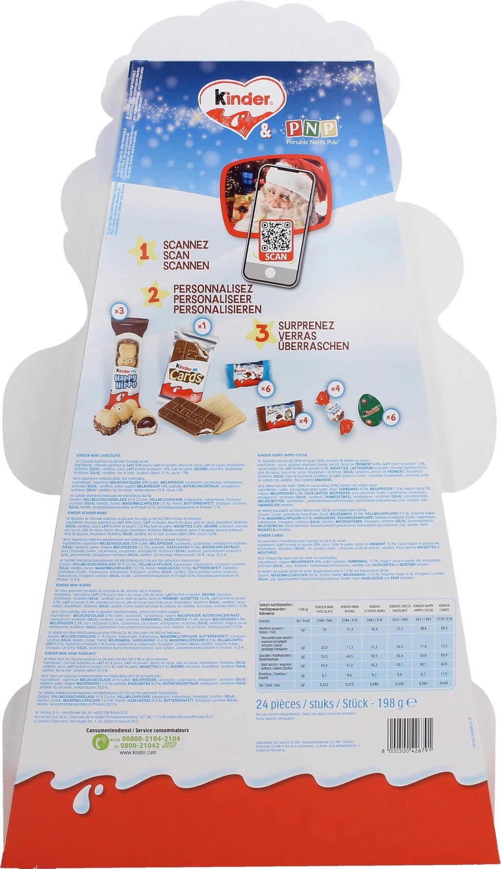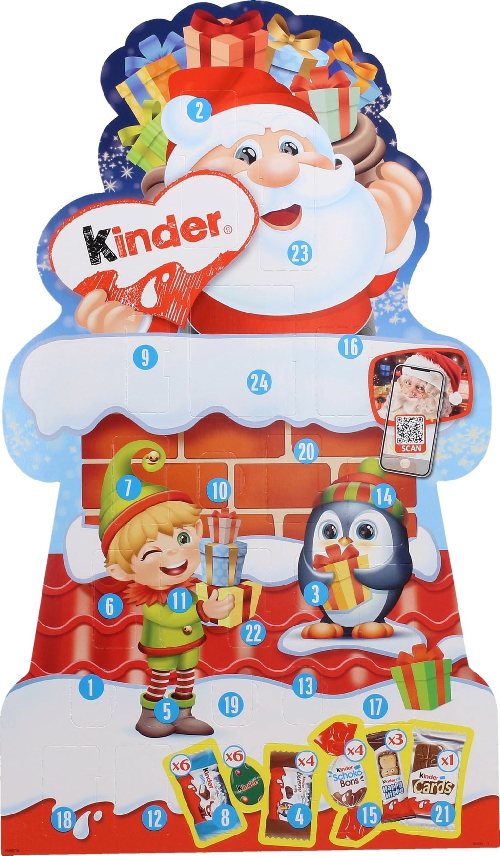 ¡Las mejores variedades Kinder Ferrero te esperan detrás de 24 ventanitas! Un total de 6 variedades endulzan la espera de la Navidad de niños y golosos.