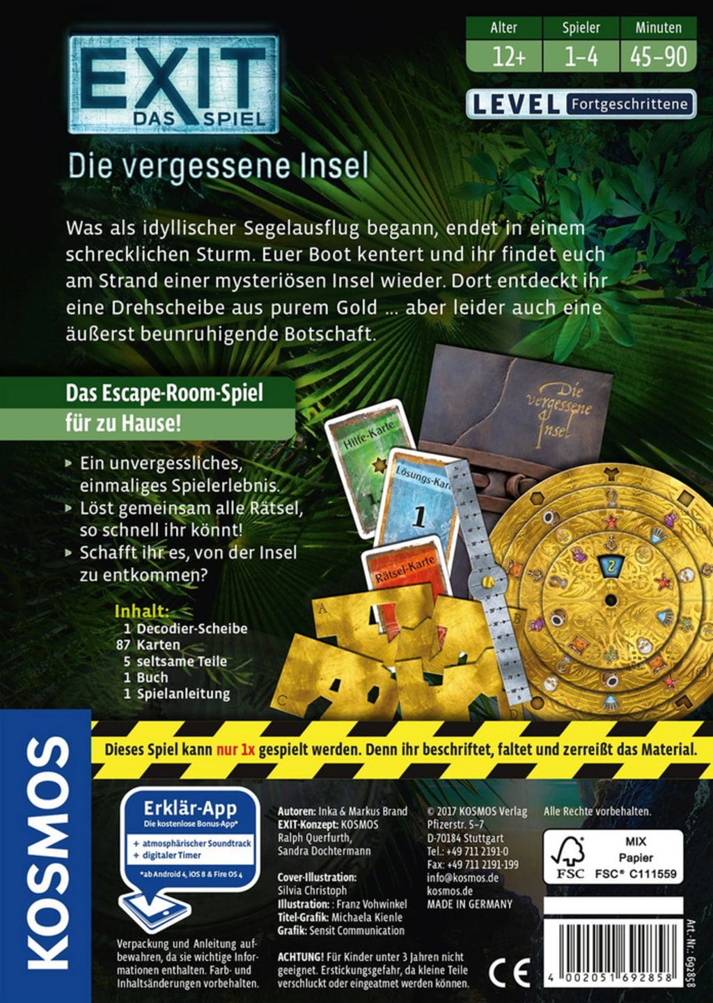 Utiliza el pensamiento lógico y la creatividad junto a tus amigos para encontrar la forma de salir de esta isla fantasmal. También puede ocurrir que el material del juego tenga que rasgarse, doblarse o escribirse. Por lo tanto, el juego sólo puede jugarse una vez.
