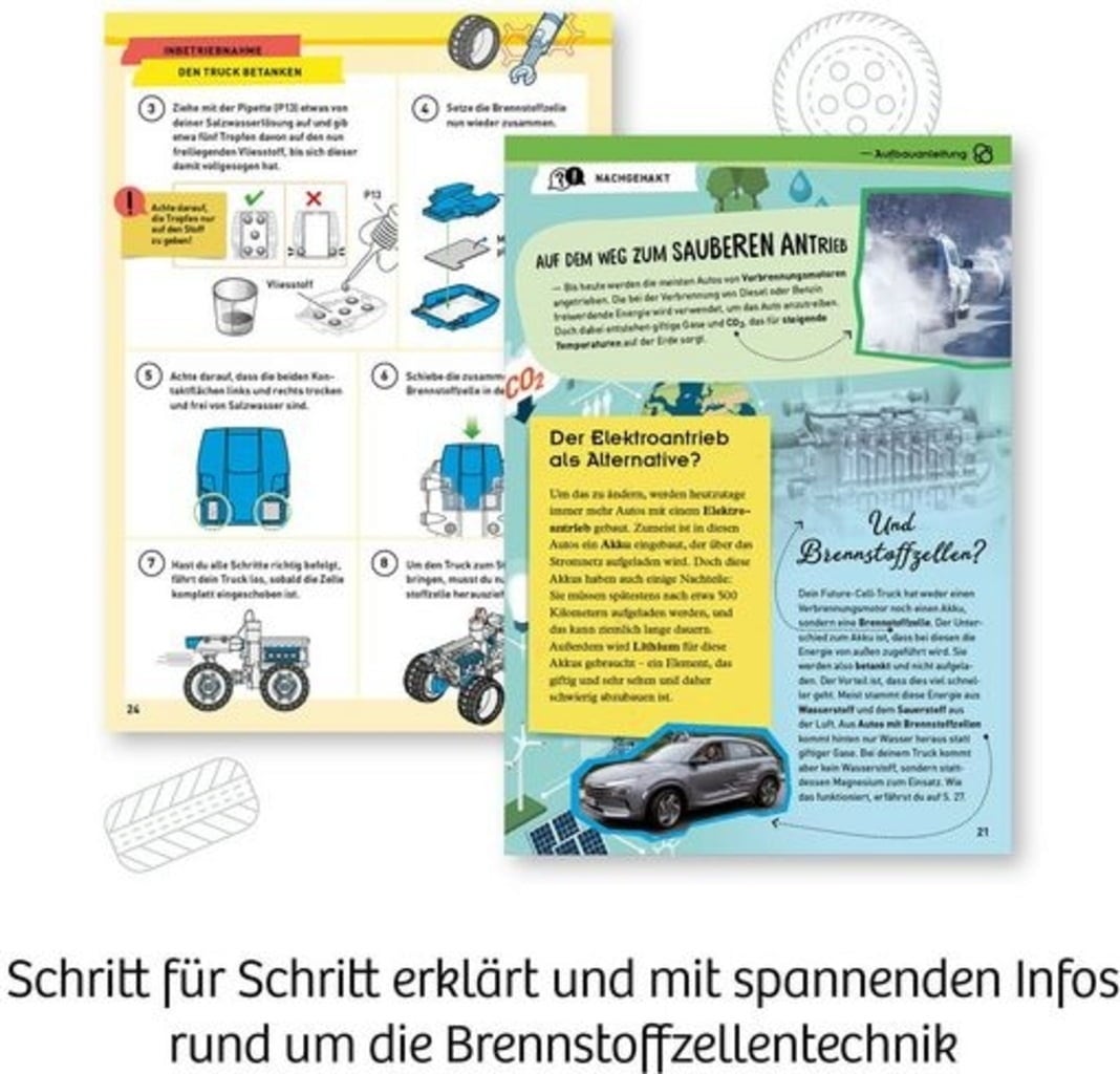 Contenido: piezas de montaje para el camión, célula con placas de carbono, papel secante y 3 placas de magnesio, pipeta.