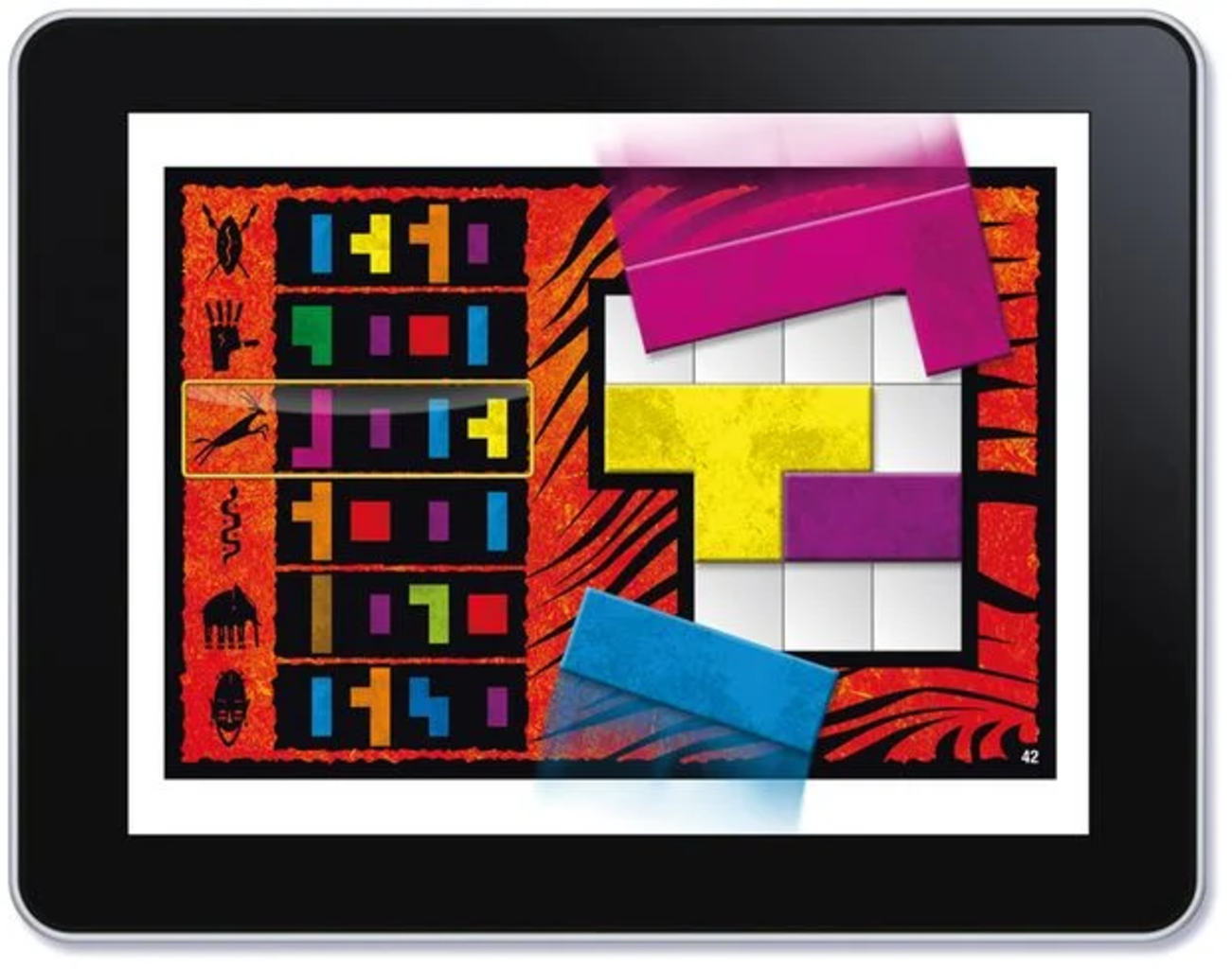 En Ubongo todo gira en torno a la capacidad de combinación y la velocidad. Después de que todos los jugadores hayan recibido un tablero con todas las piezas, el juego puede comenzar. El jugador que resuelve el puzzle más rápido grita "Ubongo" y puede recoger gemas preciosas. Y si no quieres leer el folleto de reglas, puedes utilizar la aplicación explicativa gratuita.