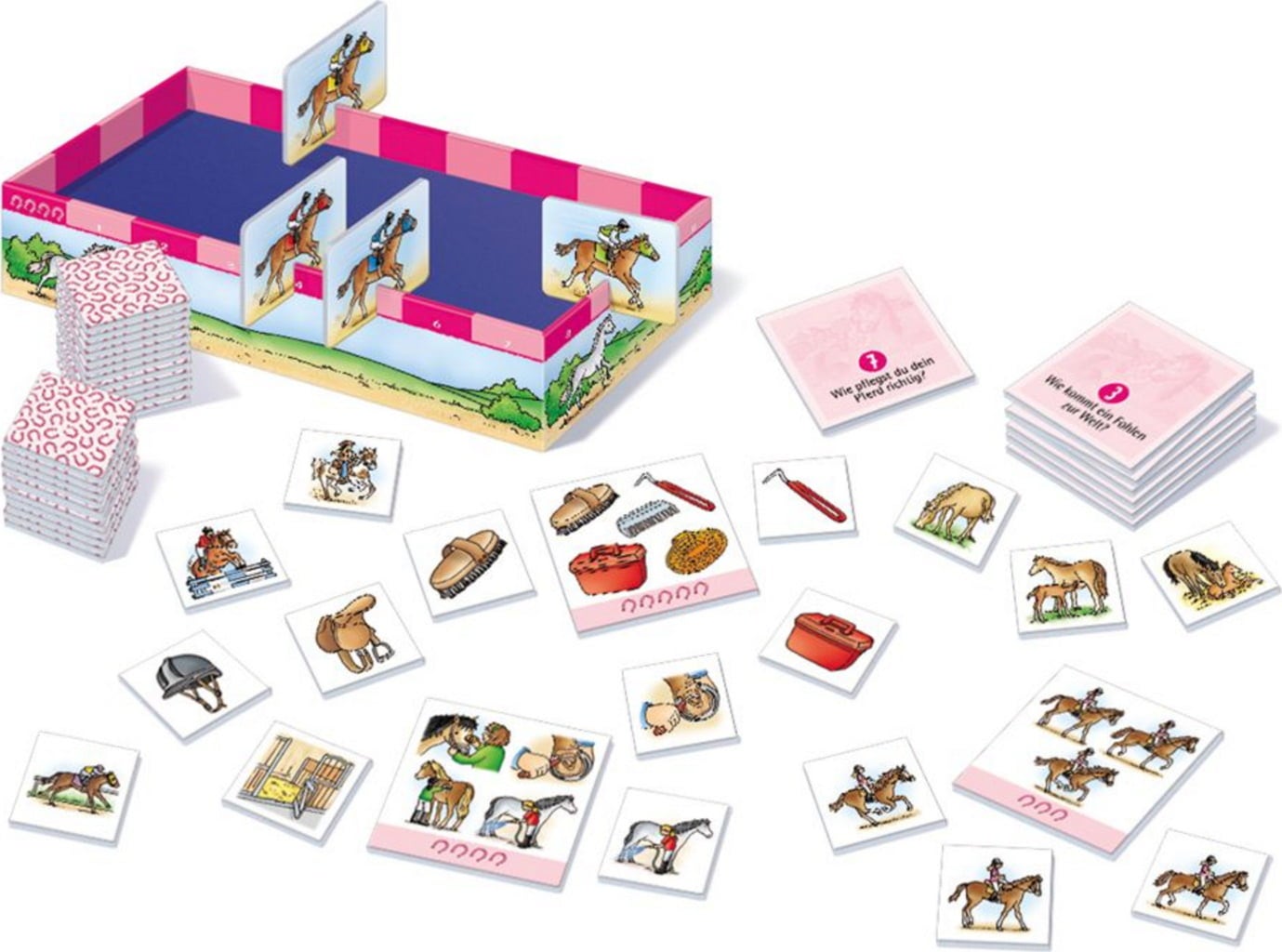 En 10 áreas temáticas dedicadas a caballos y ponis, los jugadores buscan tarjetas con patrones iguales que deben recordar. Un regalo perfecto para todos los profesionales del mundo del caballo y para los que quieren llegar a serlo